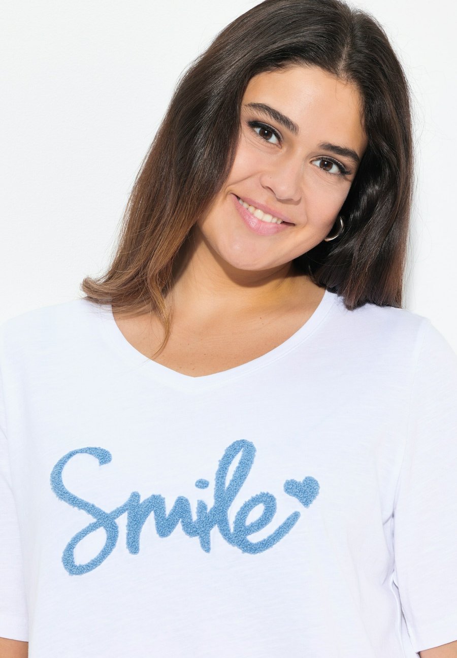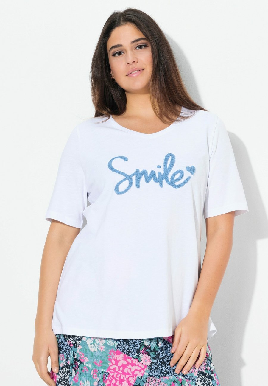 Футболка Ulla Popken SMILE SHORT SLEEVE GRAPHIC , Snow White/White