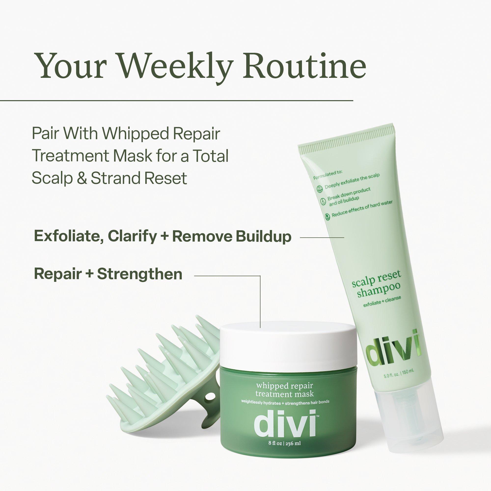 Один раз в неделю наносите на кожу головы по секциям, используя насадку с точным дозатором, и равномерно массируйте вместо обычного шампуня. Тщательно смойте. После этого воспользуйтесь вашим любимым кондиционером Divi.Ингредиенты