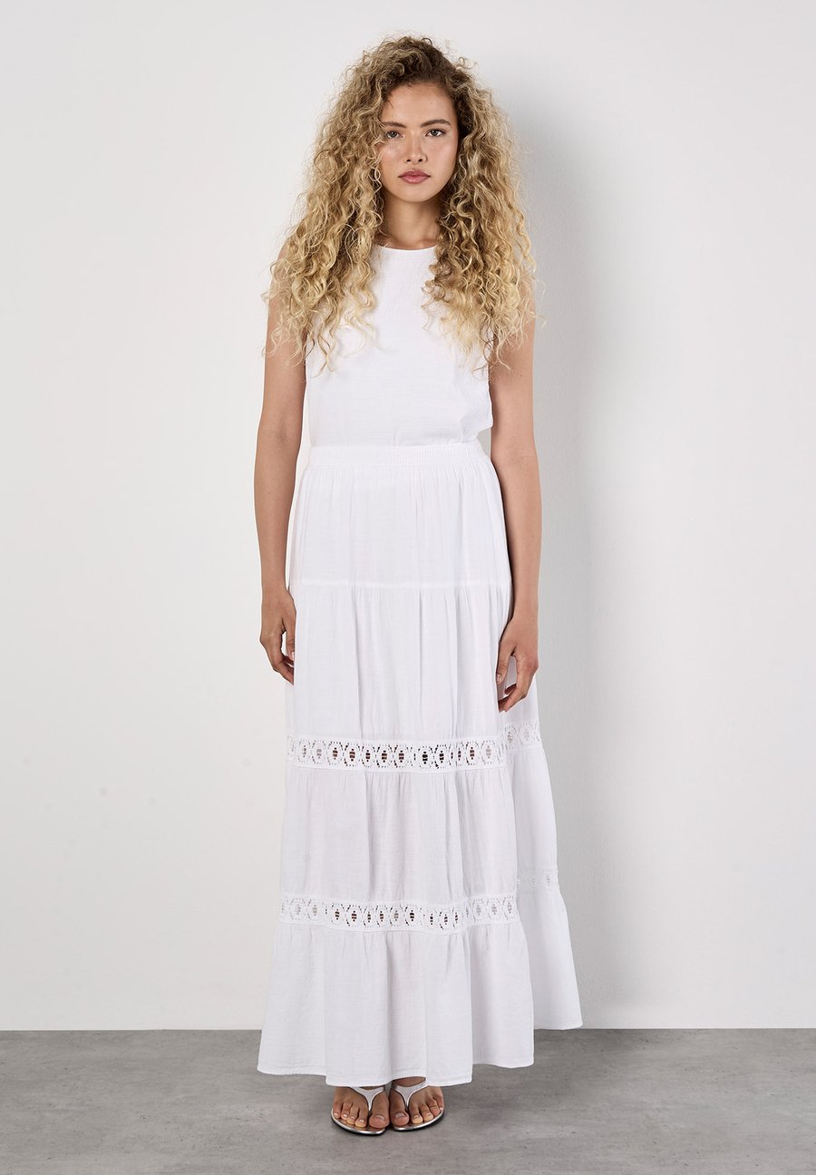 Создайте свой летний гардероб с этой незаменимой макси-юбкой. Платье ярусного кроя с эластичным поясом для комфортной посадки и кружевными вставками, придающими женственный вид. Посадка: ОбычнаяМатериал и уход