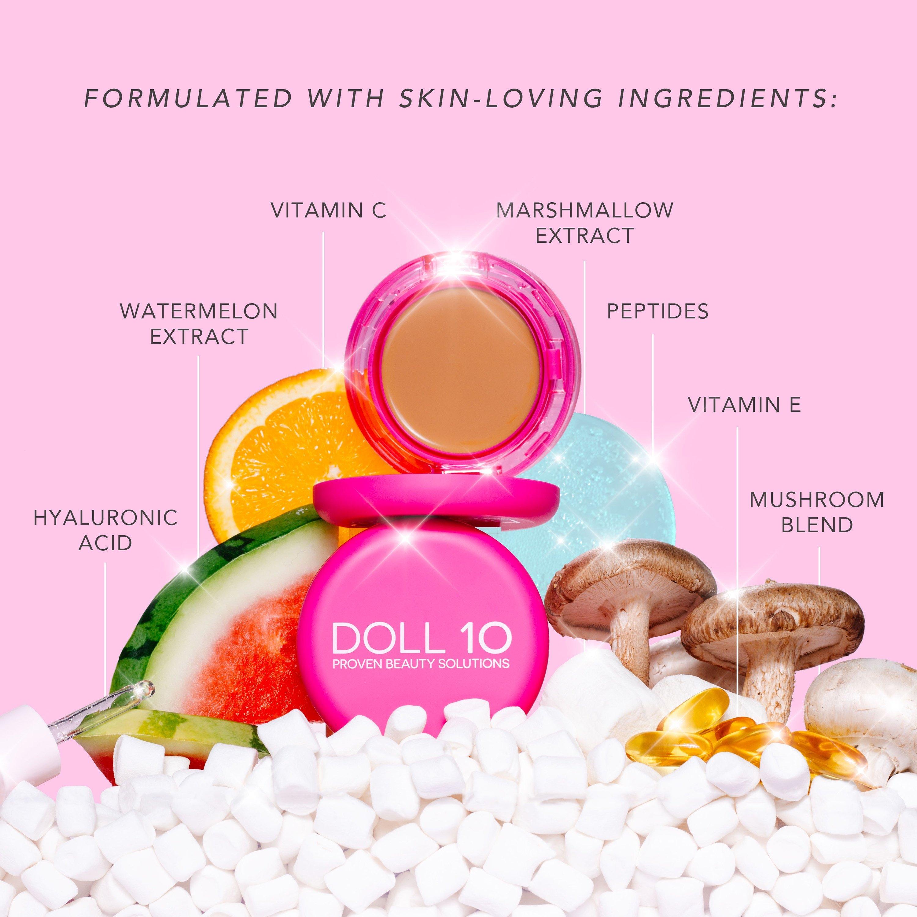 - В Doll 10 Beauty мы вручную отбираем каждый ингредиент, потому что то, чего нет в ваших продуктах, так же важно, как и то, что есть. Наш список Не использовать включает более 2400 ингредиентов, что намного больше, чем отраслевой стандарт. Вы не найдете парабенов, фталатов, сульфатов, талька или формальдегида ни в одном из наших продуктов.