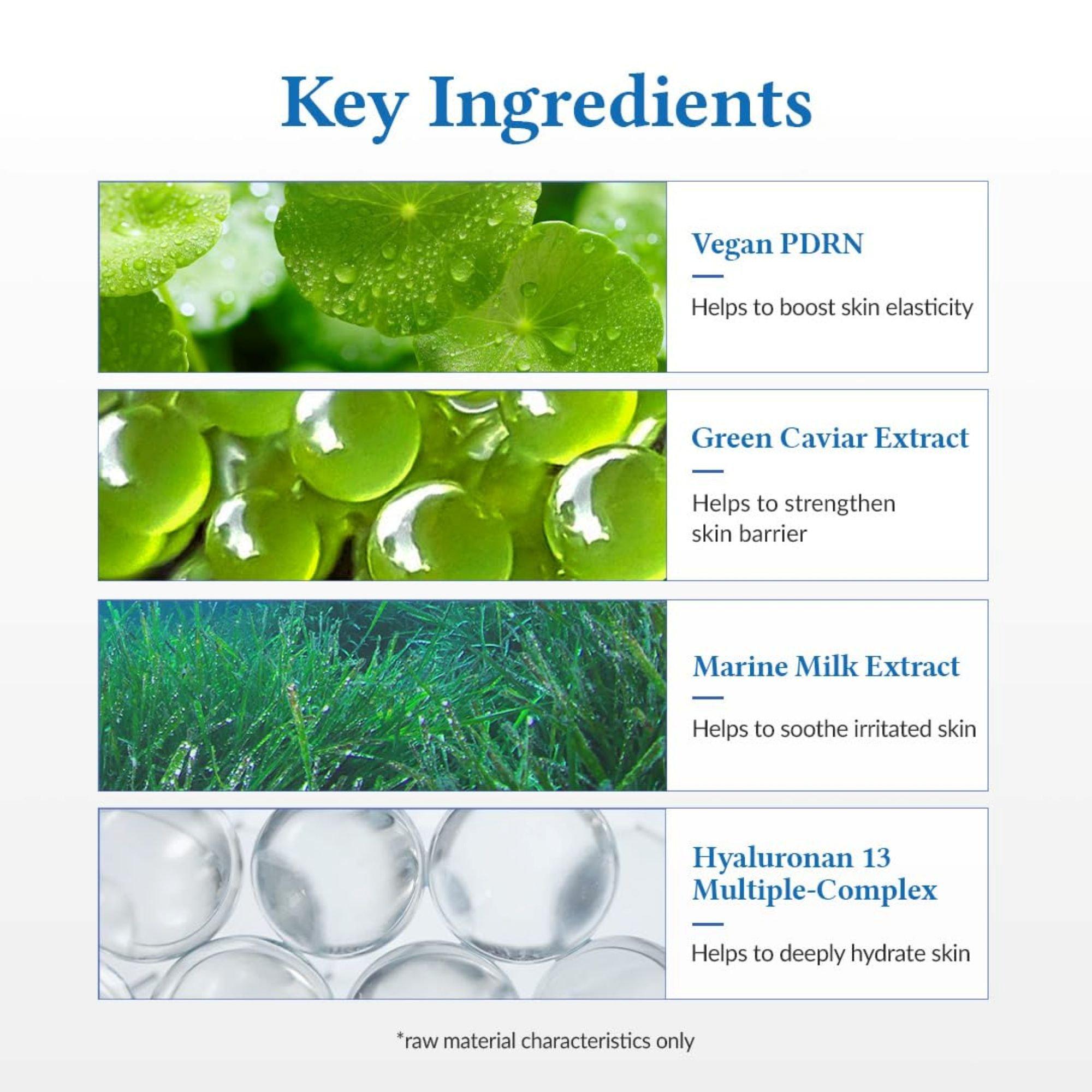 Bambusa Vulgaris Water, 1,2-Hexanediol, Propanediol, Water, Glycerin, Hydrogenated Polydecene, C14-22 Alcohols, C12-20 Alkyl Glucoside, Caprylic/Capric Triglyceride, Codium Fragile Extract, Palmaria Palmata Extract, Chondrus Crispus Extract, Sargassum Pallidum Extract, Butylene Glycol, Hyaluronic Acid, Hydrolyzed Hyaluronic Acid, Sodium Hyaluronate, Panthenol, Vinyl Dimethicone, Cetyl Alcohol, Carbomer, Tromethamine, Sodium DNA, Hydrogenated Lecithin, Dextrin, Gardenia Florida Fruit Extract, Polyglutamic Acid, Hydrolyzed Sodium Hyaluronate, Hydroxypropyltrimonium Hyaluronate, Potassium Hyaluronate, Sodium Hyaluronate Crosspolymer, Pentylene Glycol, Sodium Acetylated Hyaluronate, Guaiazulene, Agave Tequilana Leaf Extract, Sodium Retinoyl Hyaluronate, Zinc Hydrolyzed Hyaluronate, Dimethylsilanol Hyaluronate, Sodium Benzoate, Ascorbyl Propyl Hyaluronate, Ascorbylpropyl Hydrolyzed Hyaluronat, Caulerpa Lentillifera Extract, Ethylhexylglycerin, Disodium EDTA.Доставка товаров осуществляется курьером или на пункт выдачи заказов.