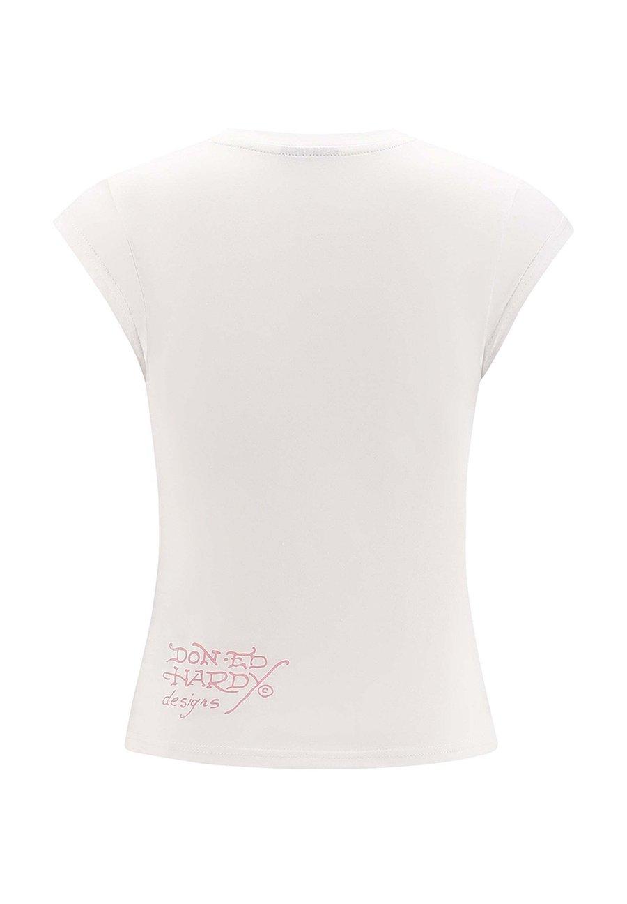 Футболка с коротким рукавом и стразами в виде карпа кои. Приталенный силуэт. Графический принт татуировки карпа кои от Ed Hardy. Длина футболки: короткий рукав. Стиль: детская футболка. Логотип Ed Hardy. 95% белый хлопок, 5% спандекс. Вырез горловины: круглый.Материал и уход