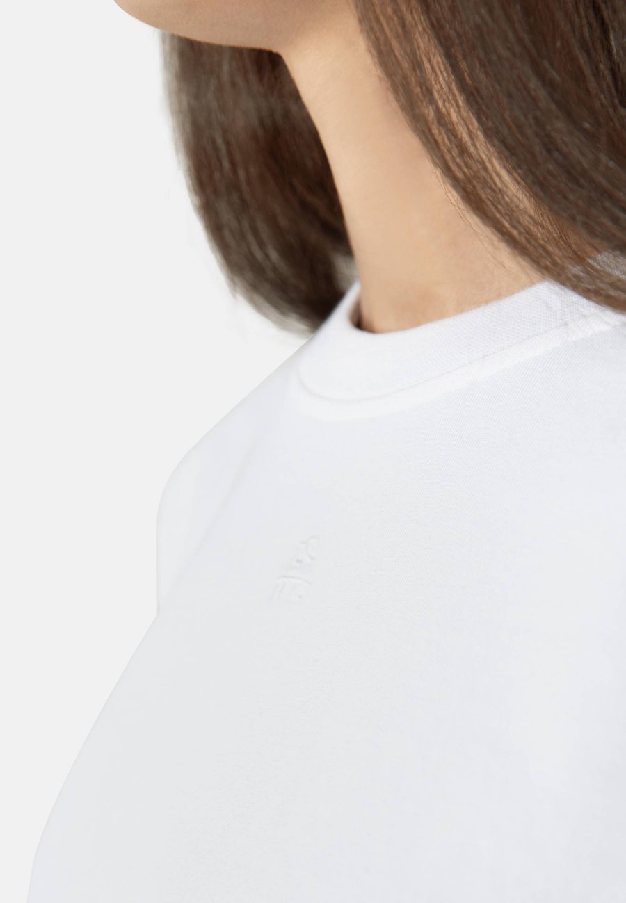 Небольшая этикетка-флажок на уровне груди. Вырез горловины: круглый.Материал и уход