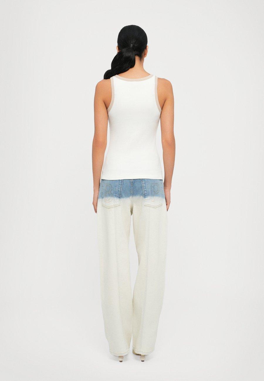 Небольшая этикетка-флажок на уровне груди. Вырез горловины: круглый.Материал и уход