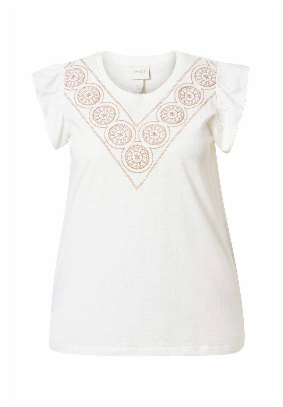 Футболка Ulla Popken GEOMETRIC EMBROIDERED CAP SLEEVE, Off White/White