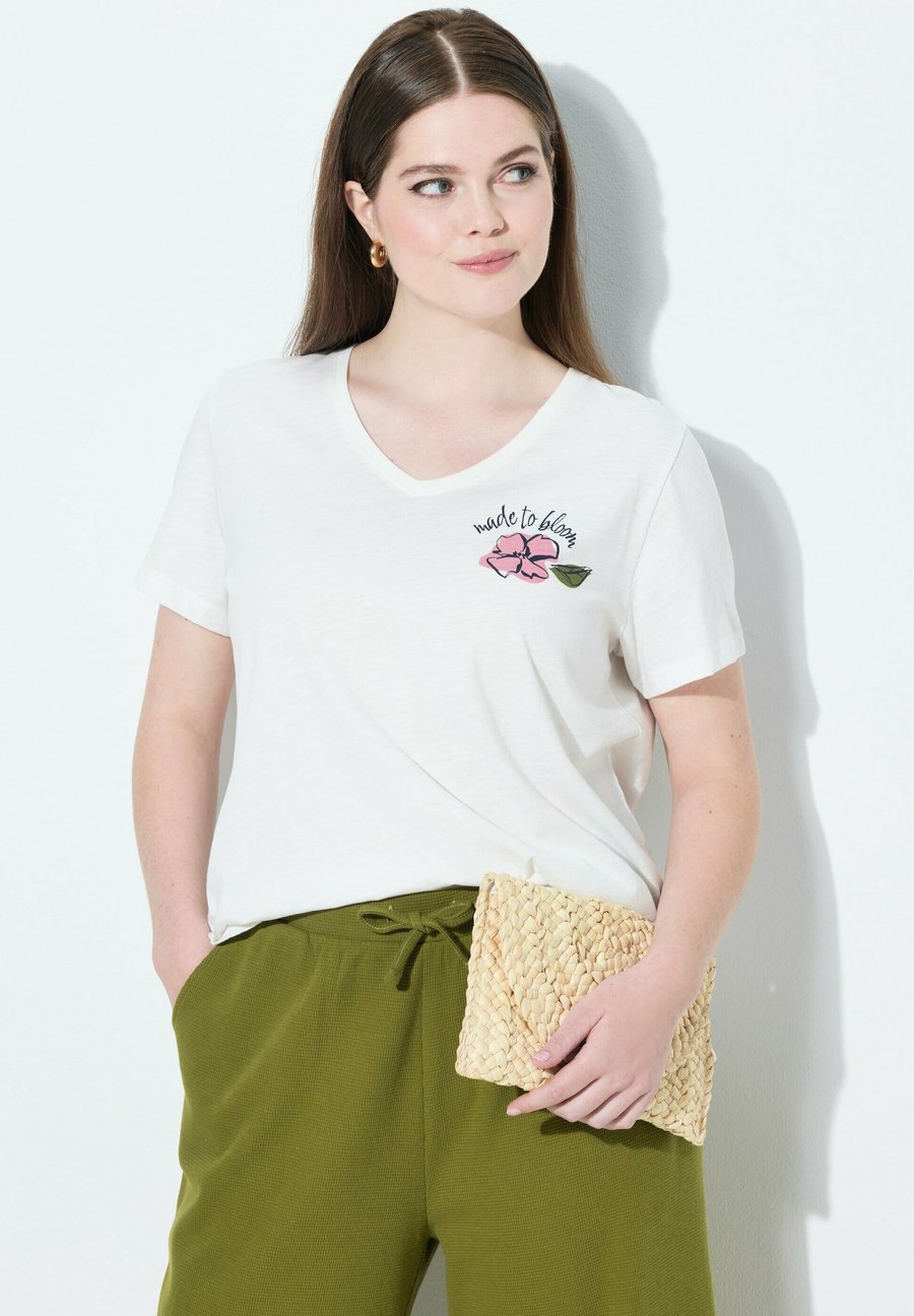 Футболка Ulla Popken FLOWER GRAPHIC, Off White/White