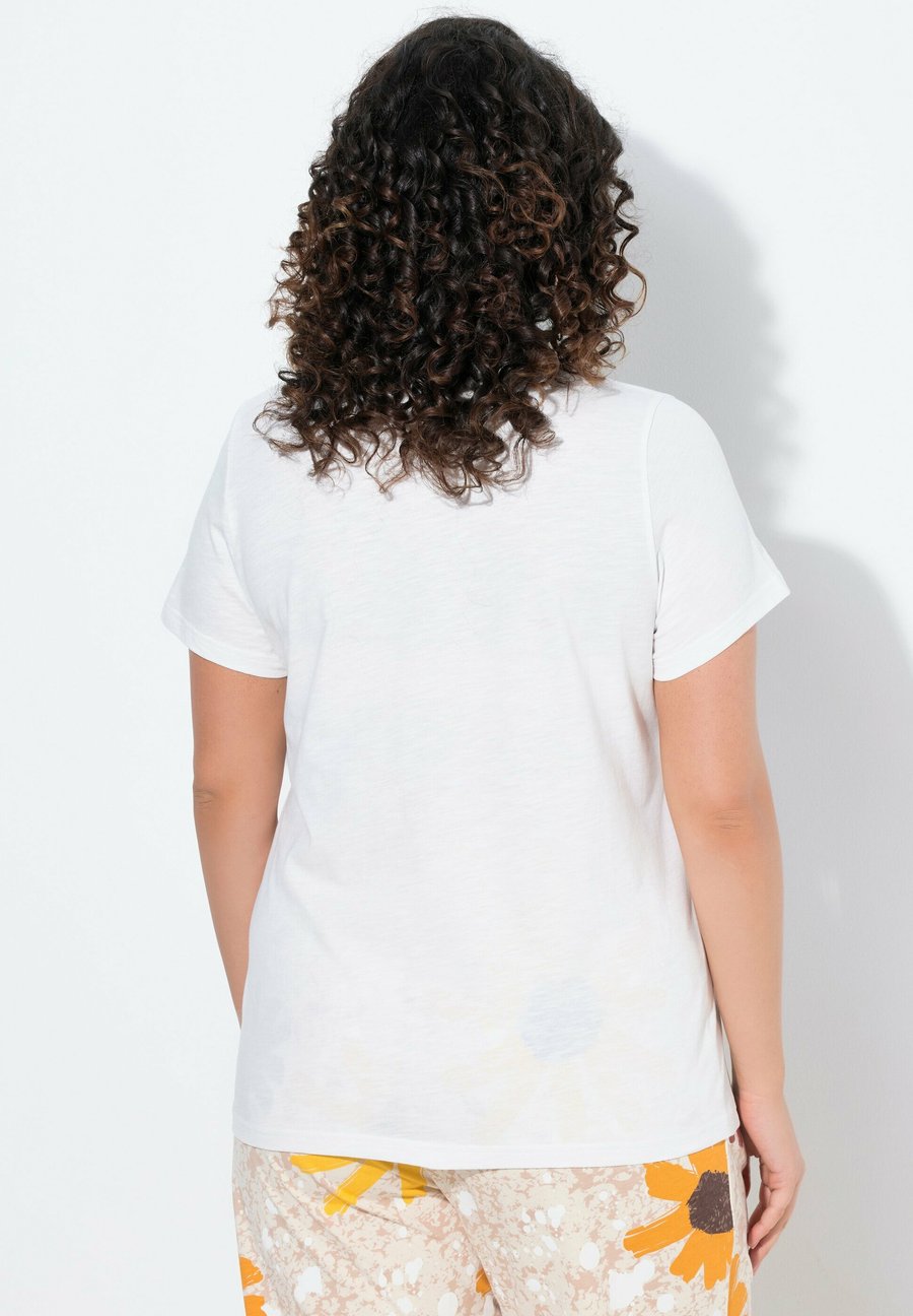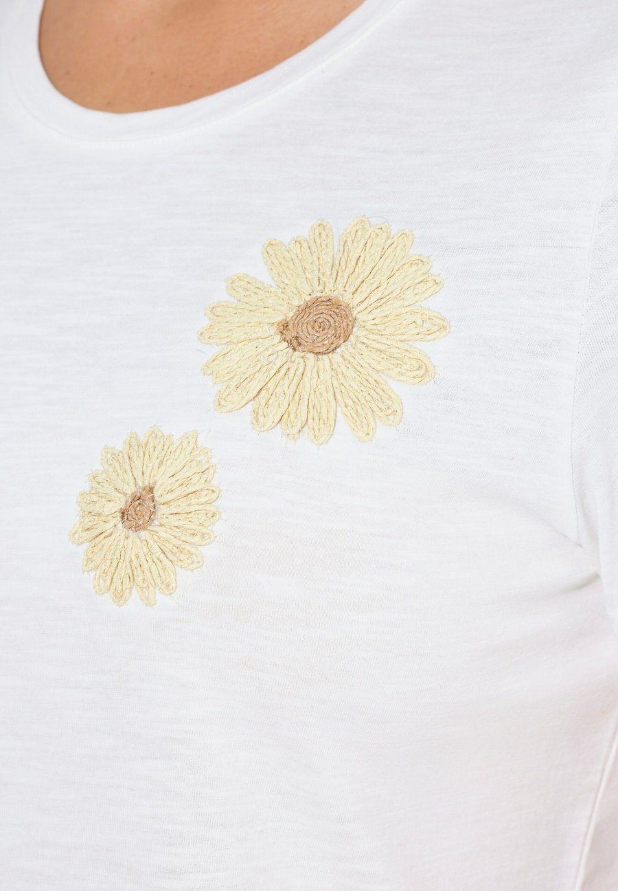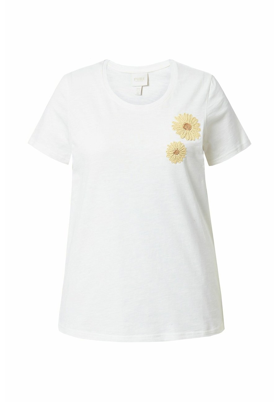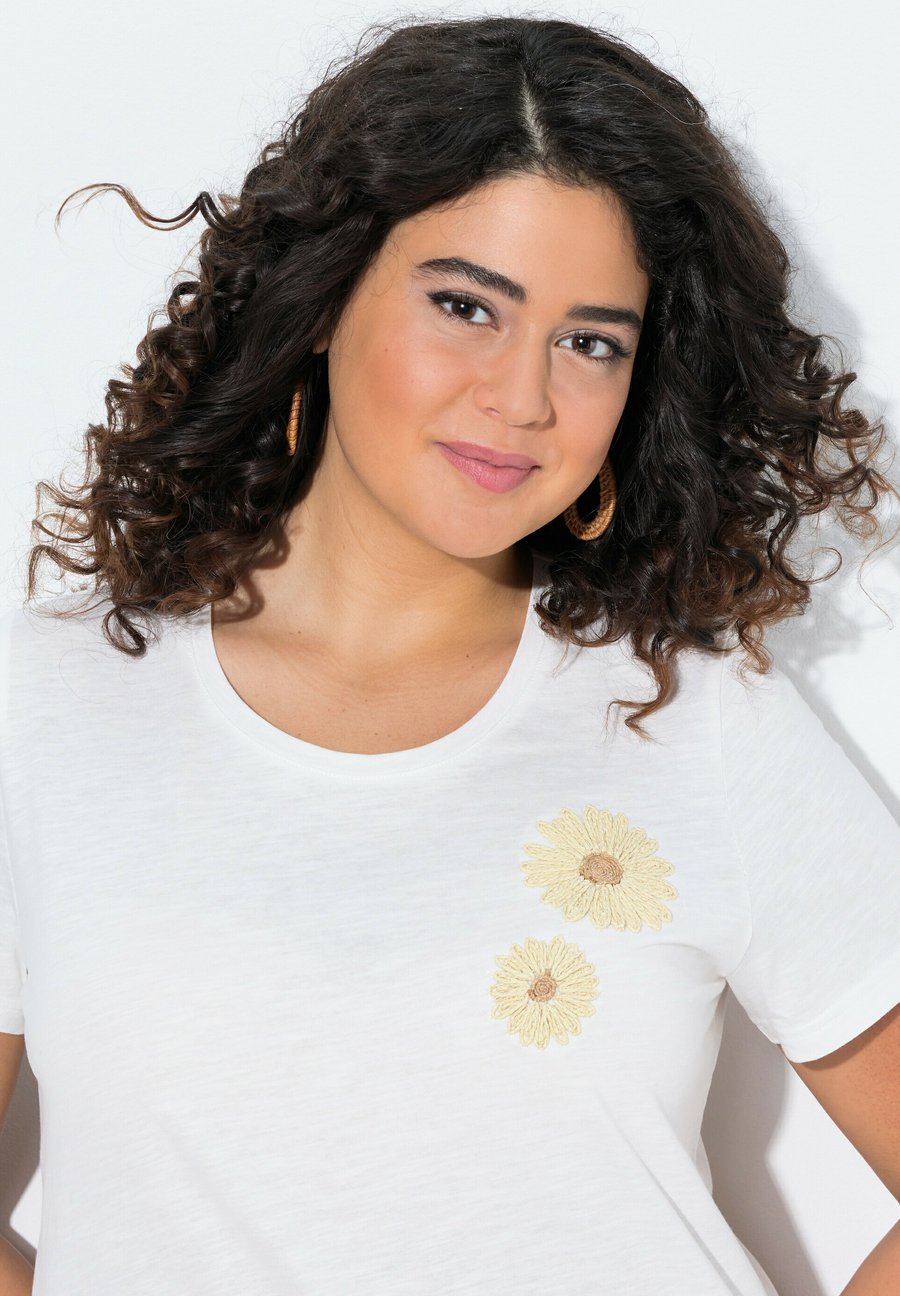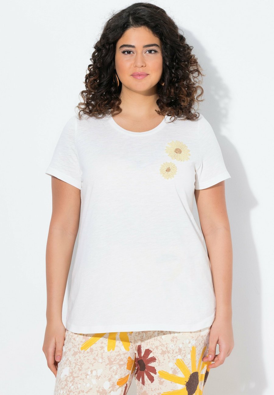 Футболка Ulla Popken SUNFLOWER EMBROIDERED SHORT SLEEVE , Off White/White