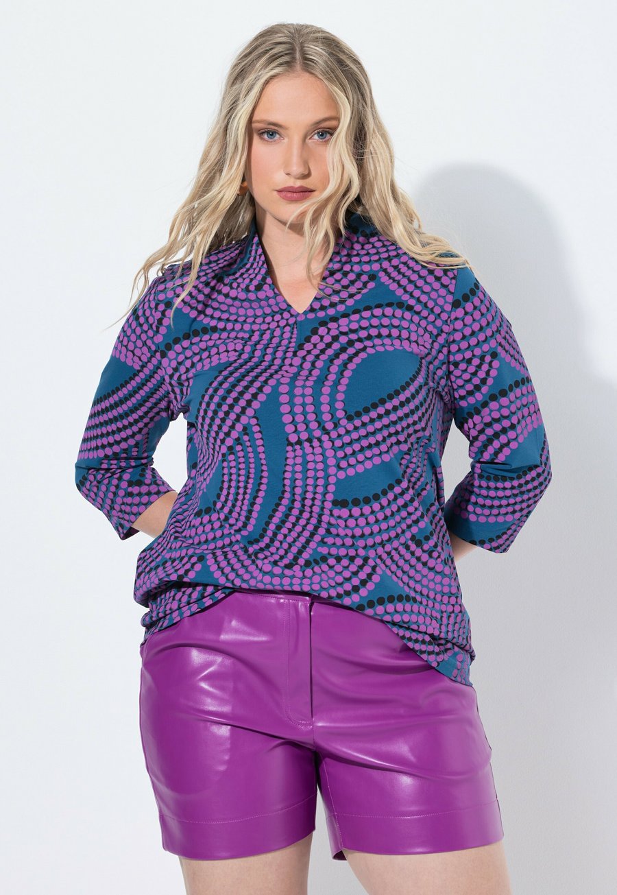 Топ Ulla Popken Long sleeved top, Teal Blue/Teal