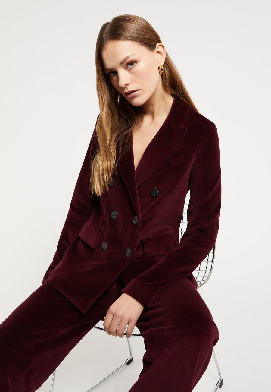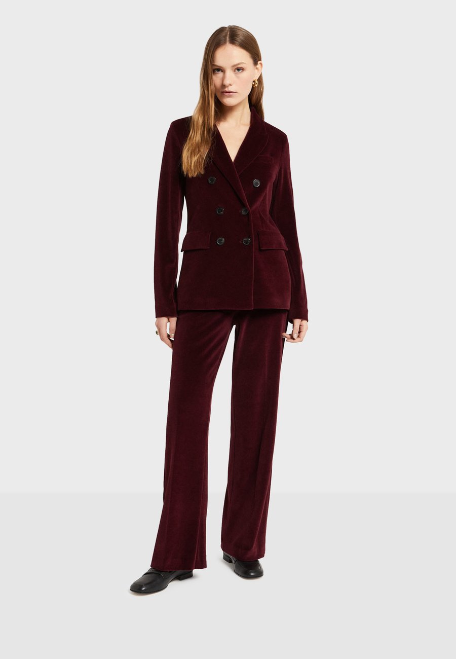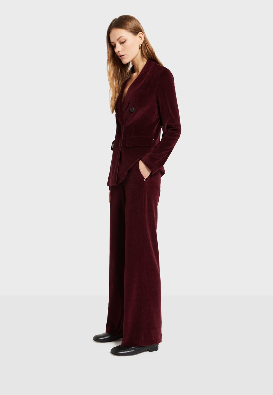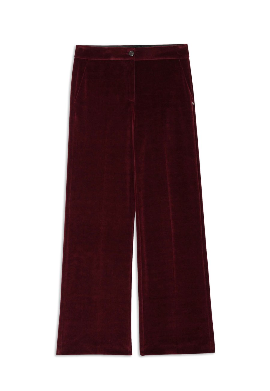Прямые брюки из мягкого, блестящего бархата, изготовленные в Италии, с высокой талией. Имеют потайную застежку-молнию и пуговицу, боковые карманы и струящийся крой, визуально удлиняющий силуэт. Изысканная текстура и глубокий оттенок делают их элегантной вещью, идеально подходящей для нарядных или элегантных повседневных образов. Посадка: НормальнаяМатериал и уход