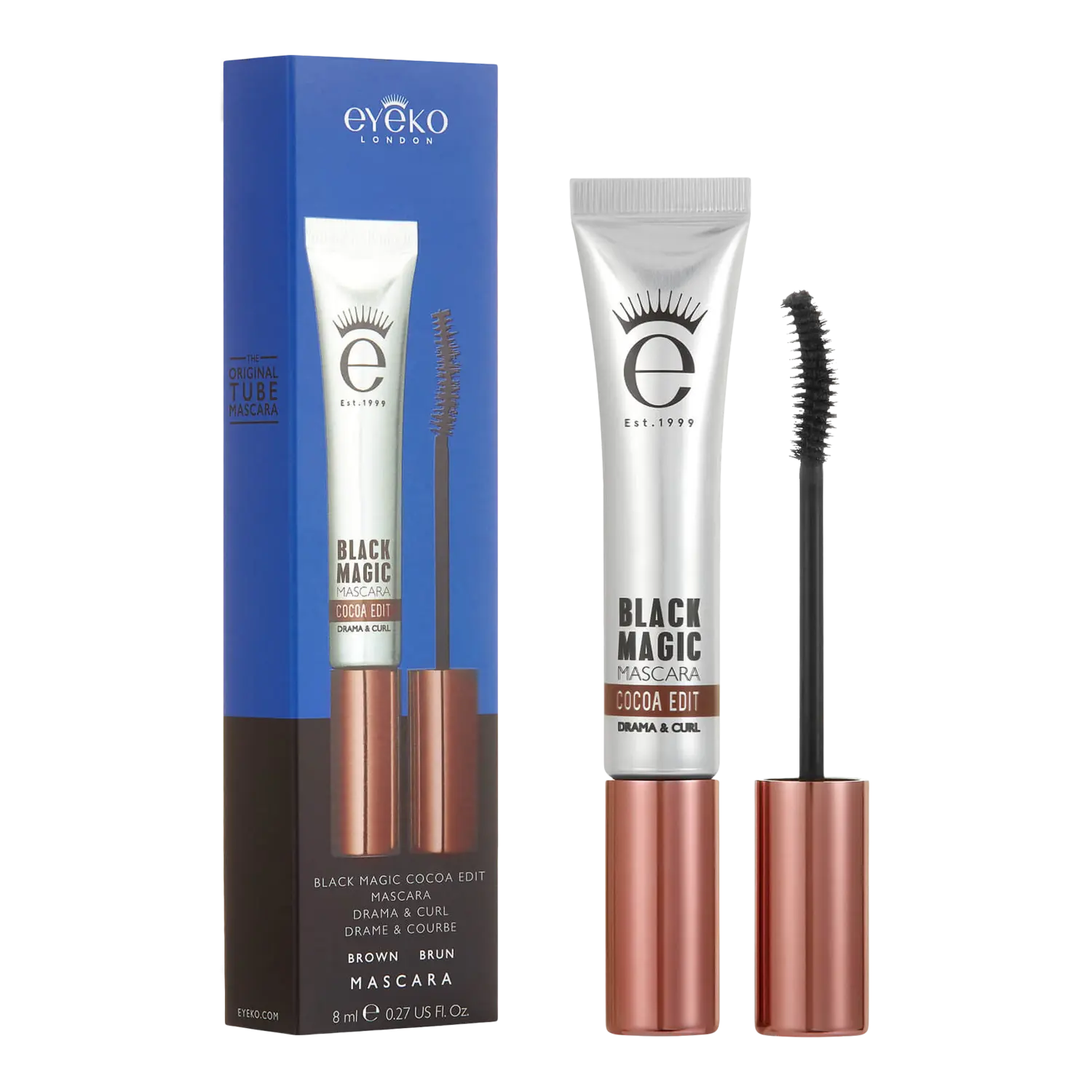 Подкрутите ресницы щипцами для завивки ресниц Eyeko, затем нанесите тушь Black Magic: The Cocoa Edit. Начиная от корней ресниц, слегка покачивайте щеточкой, чтобы захватить каждую ресницу. Медленно проведите щеточкой вверх к кончикам ресниц, чтобы покрыть каждую ресницу.Ингредиенты