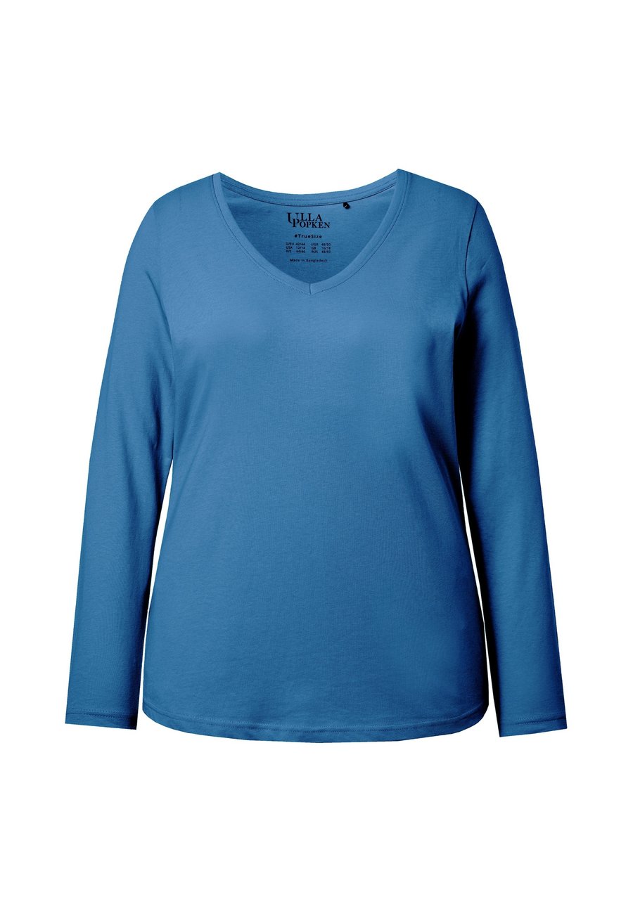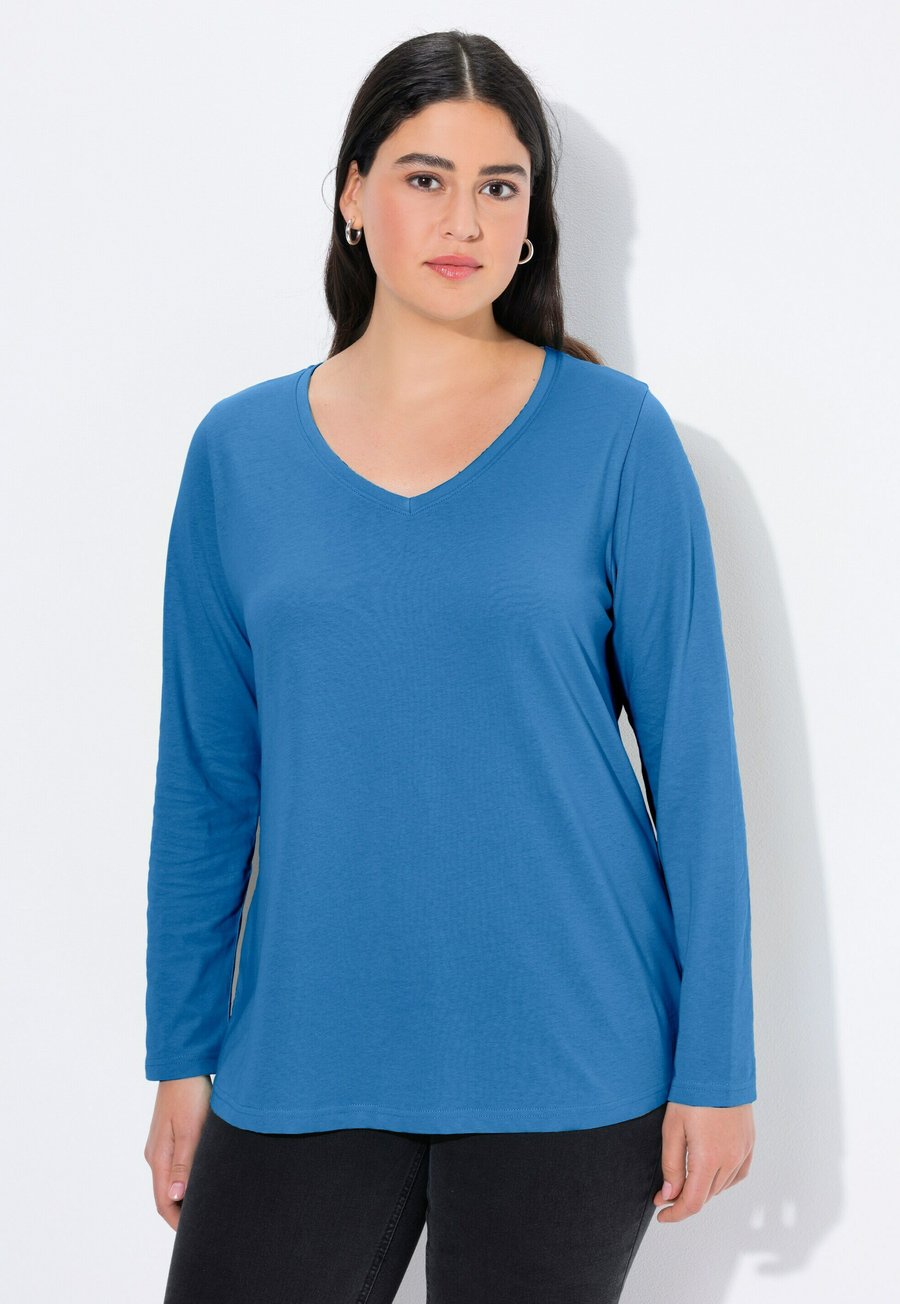 Топ Ulla Popken V-NECK LONG SLEEVES, Cornflower/Blue