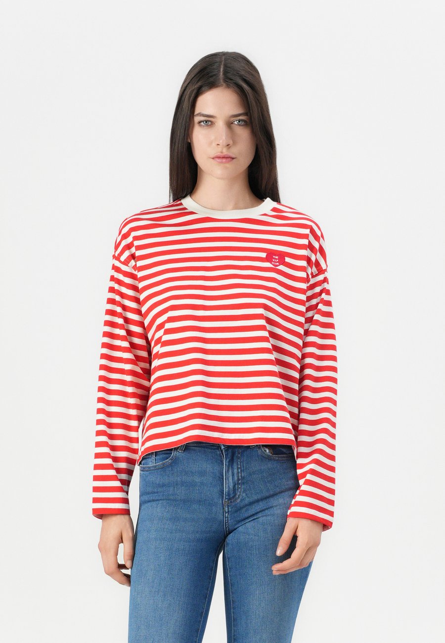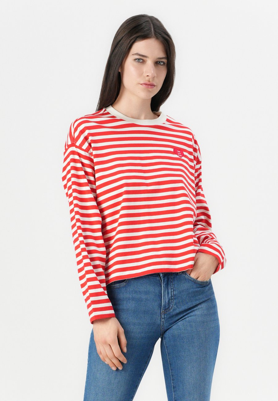 Топ ONLY ONLLIVINA O NECK STRIPE , High Risk Red/Cloud Dancer/Red