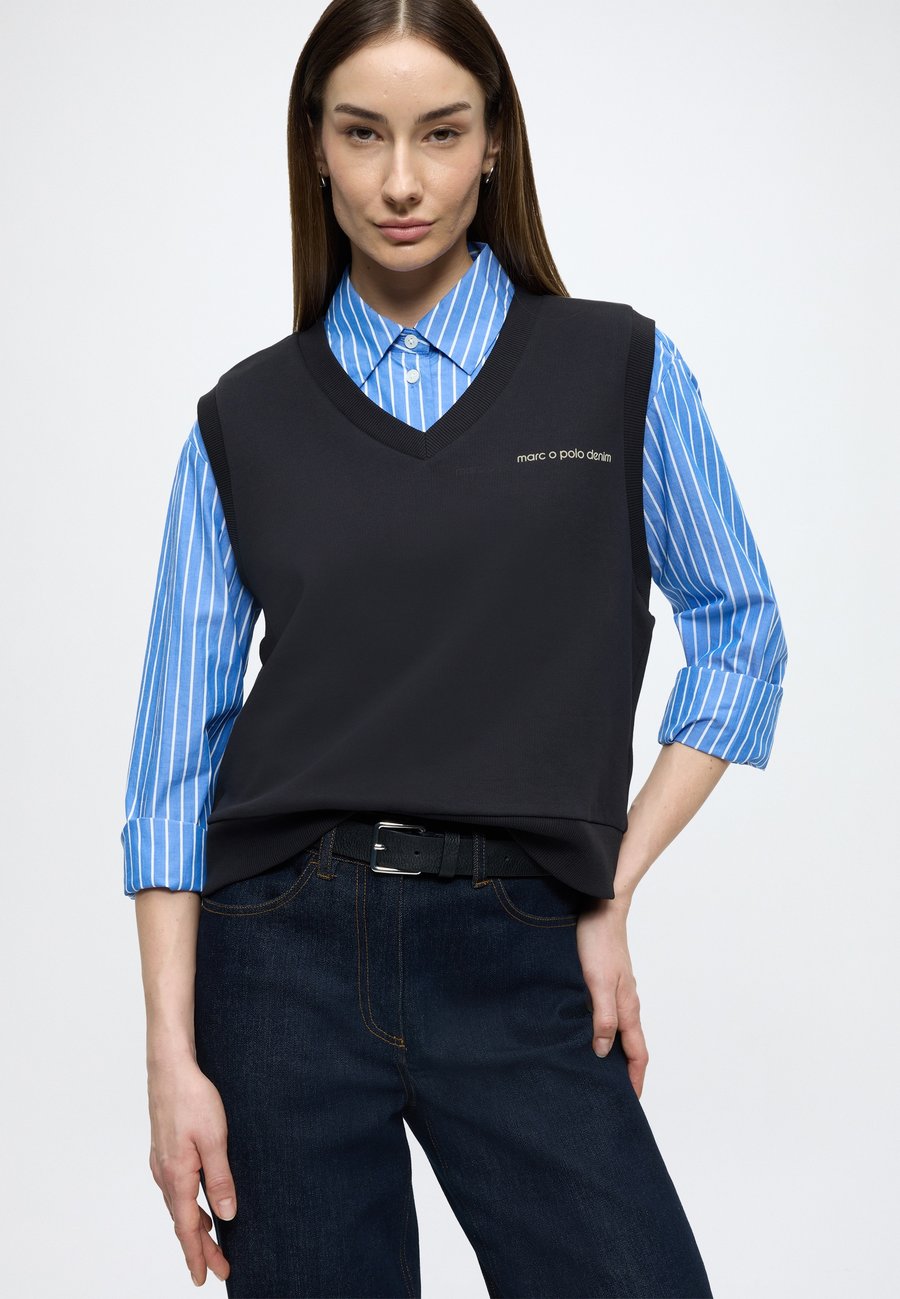 Футболка Marc O'Polo DENIM SWEAT PULLUNDER, V-NECK, CHEST ARTWORK, Blue Depths/Dark Blue