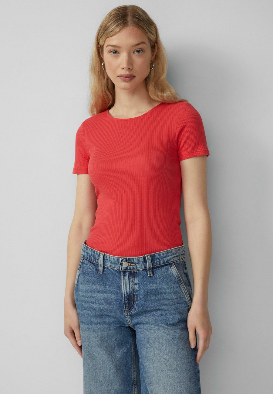 Футболка QS SCHMAL GESCHNITTENES MIT AJOURMUSTER, Rot/Red