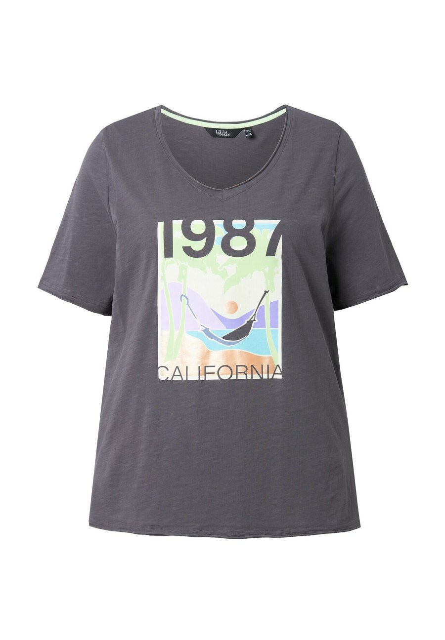 Футболка Ulla Popken Print T-shirt, Graphite Grey/Grey