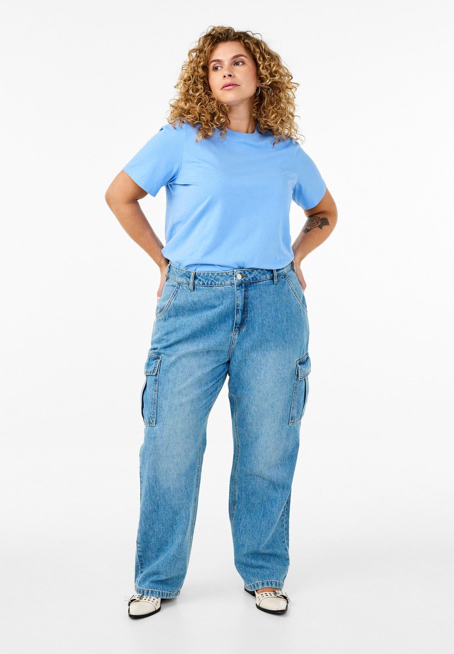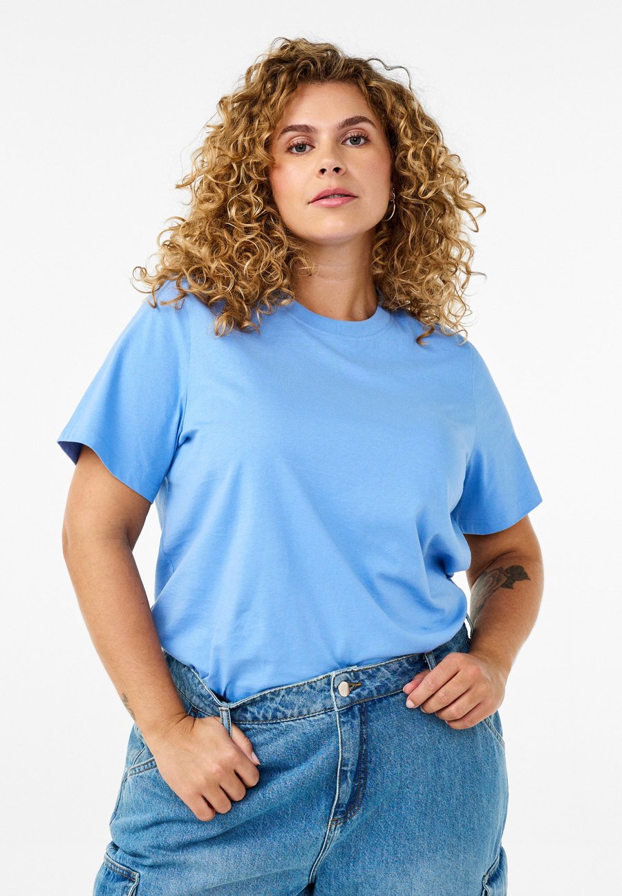 Футболка Zizzi MIT RUNDHALSAUSSCHNITT, Della Robbia Blue/Light Blue