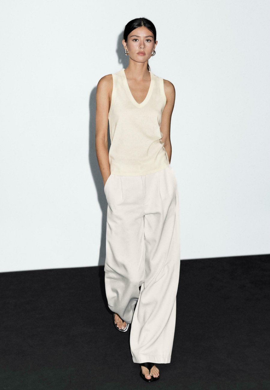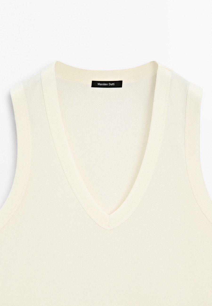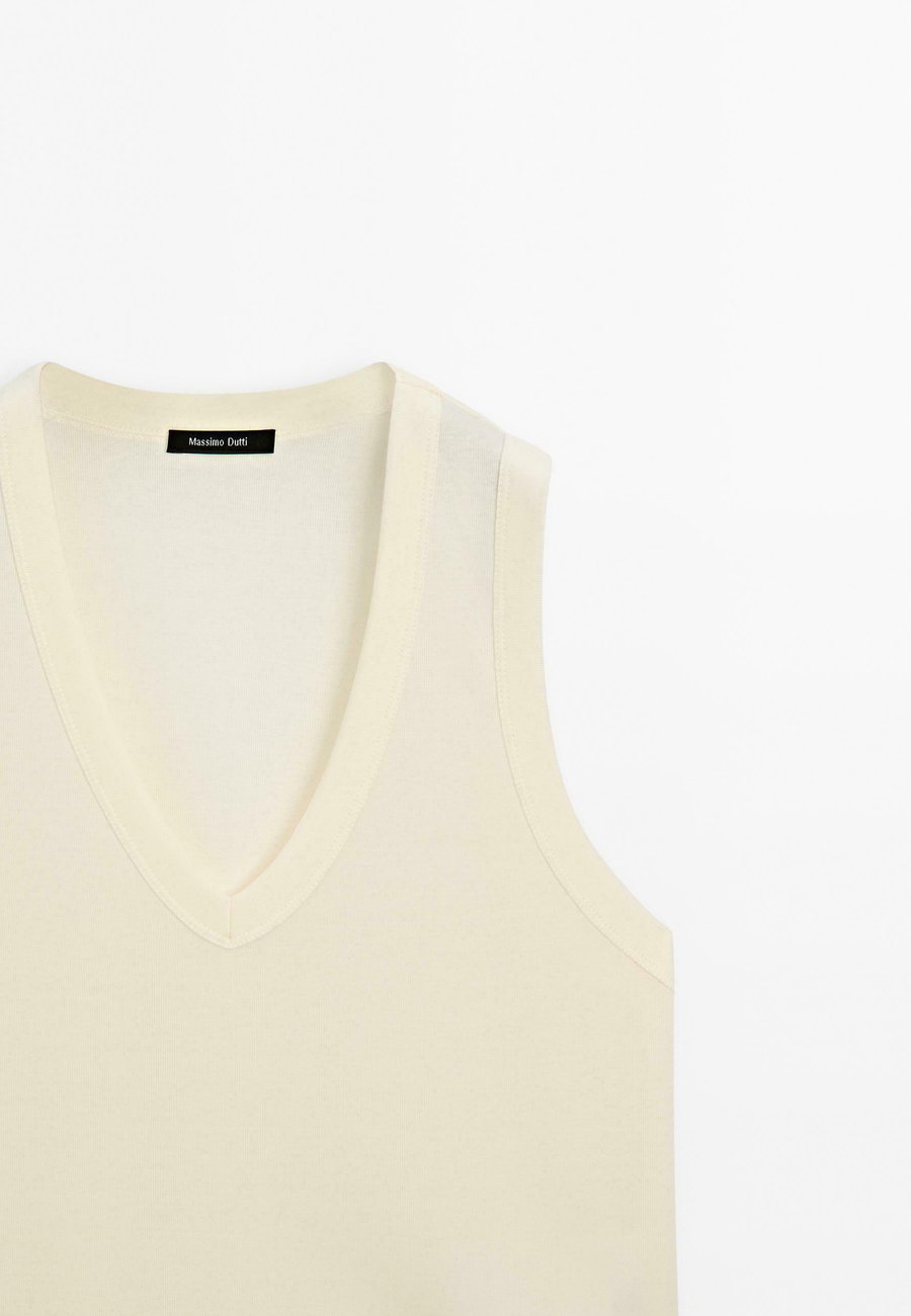 Футболка из 100% хлопка. V-образный вырез. Без рукавов. Ребристая отделка. Вырез: V-образный.Материал и уход