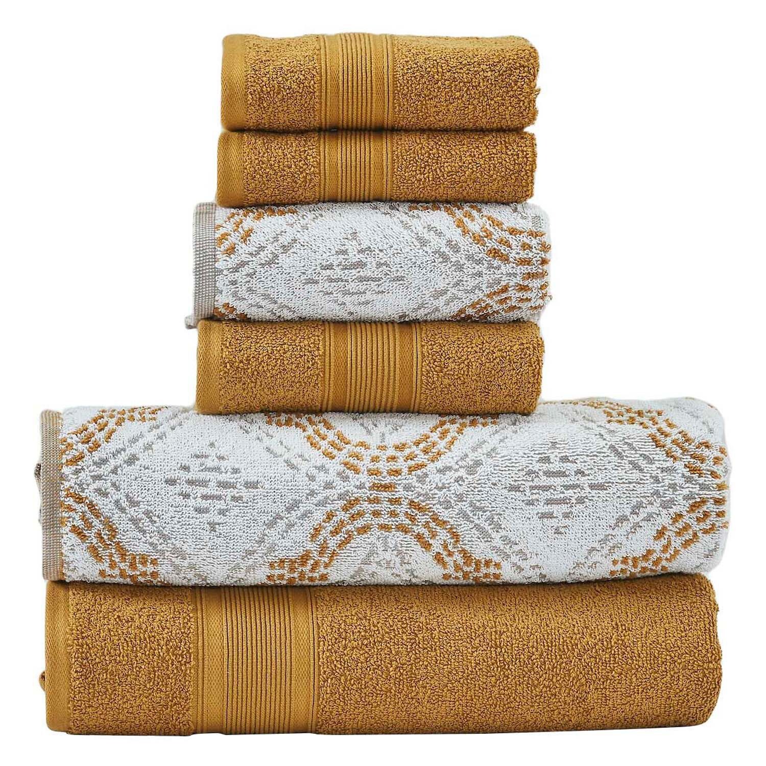 Придайте роскошный вид вашей вешалке для полотенец в ванной с помощью этого набора жаккардовых полотенец капри Modern Threads из 6 предметов.