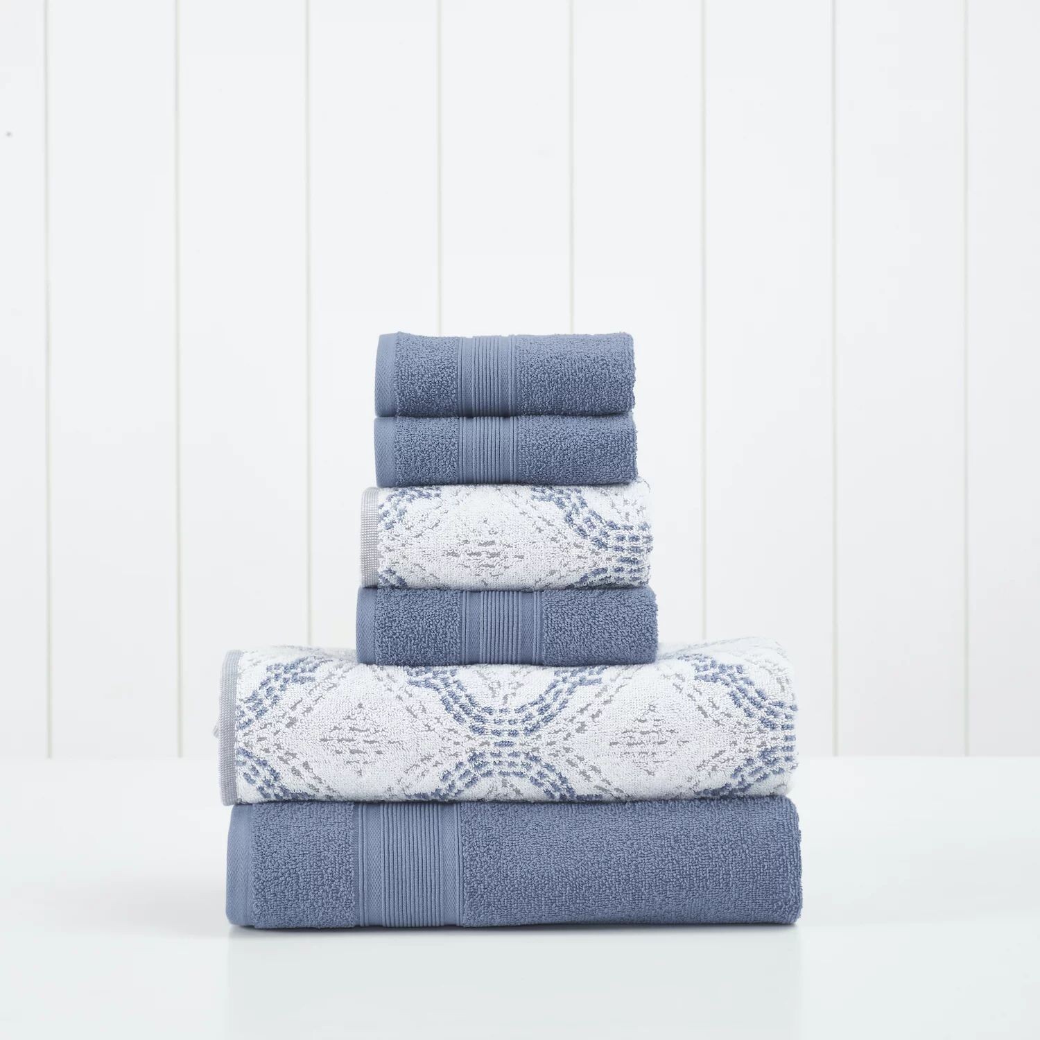 Придайте роскошный вид вашей вешалке для полотенец в ванной с помощью этого набора жаккардовых полотенец капри Modern Threads из 6 предметов.