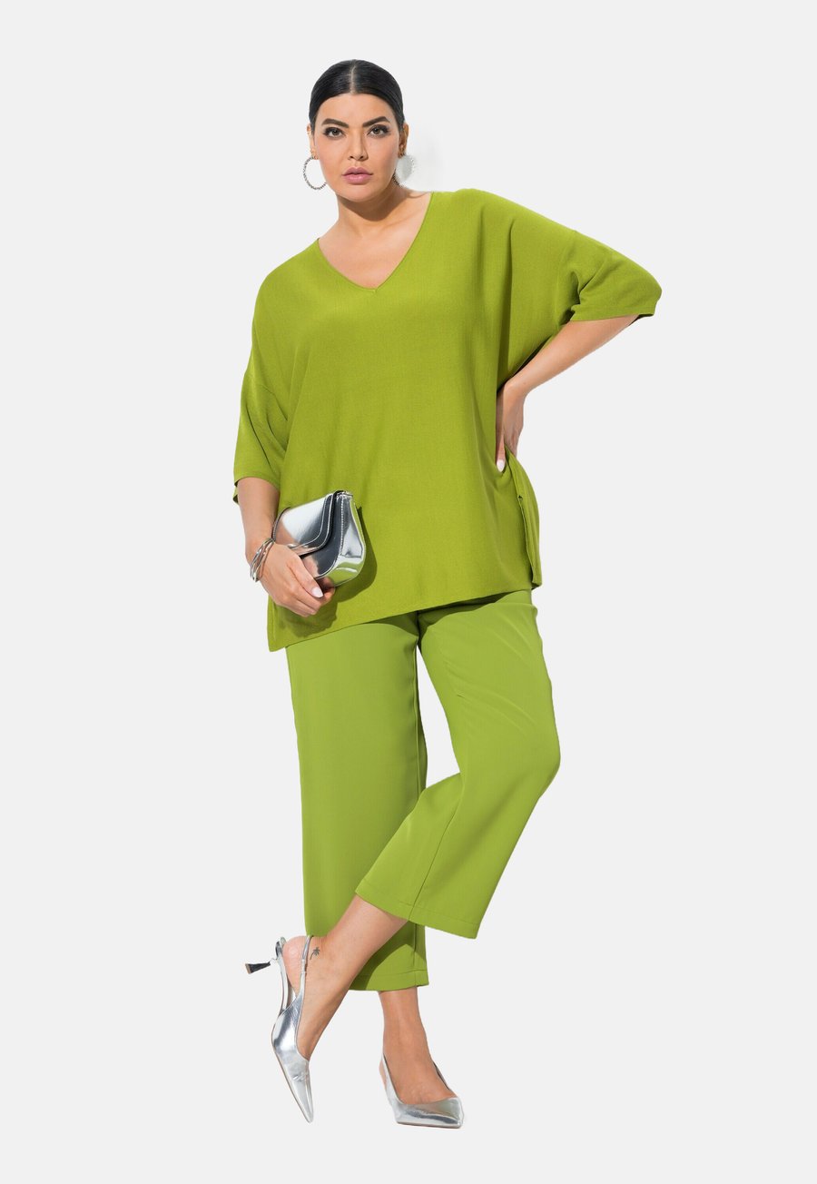 Брюки Ulla Popken 7/8 BÜGELFALTEN, ELASTIKBUND, BINDE, Grass Green/Green