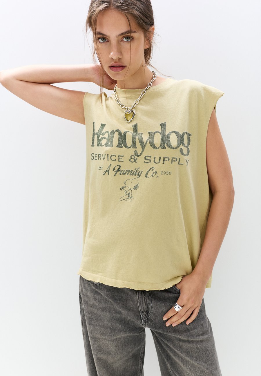 Топ PULL&BEAR SNOOPY , Green/Mottled Light Yellow