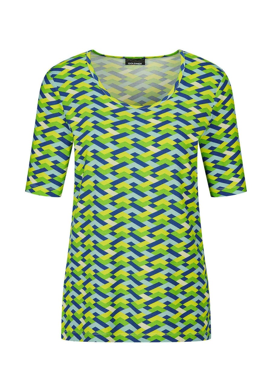 Футболка GOLDNER Print T-shirt, Green/Blue/Yellow Patterned/Green