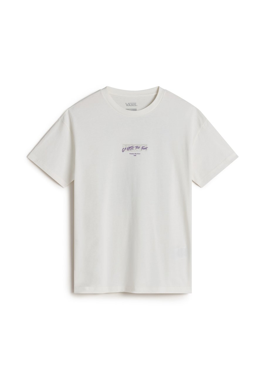 Футболка Firemade Oversized - женская футболка с графическим принтом. Цвет и состав материала: - Чистая белая основа с фиолетовыми графическими элементами в винтажном стиле - Высококачественный 100% хлопок, плотный трикотаж - Плотность хлопковой пряжи 20/1 для превосходного качества. Особенности посадки и комфорта: - Свободный, объемный силуэт для максимального комфорта - Спущенные плечи для непринужденного образа - Классический круглый вырез с ребристой отделкой - Длина до бедра для универсального стиля - Плотная хлопковая ткань для прочности и формы. Эта футболка оверсайз сочетает в себе классический стиль Vans и современный комфорт. Графический принт, вдохновленный альбомом и отдающий дань уважения скейт-культуре, а плотная хлопковая ткань гарантирует, что эта вещь сохранит свою форму и будет становиться лучше с каждой ноской. Идеально подходит как для повседневного, так и для нарядного стиля, это базовая вещь, которая так же хороша на ощупь, как и на вид. Вырез горловины: круглыйМатериал и уход