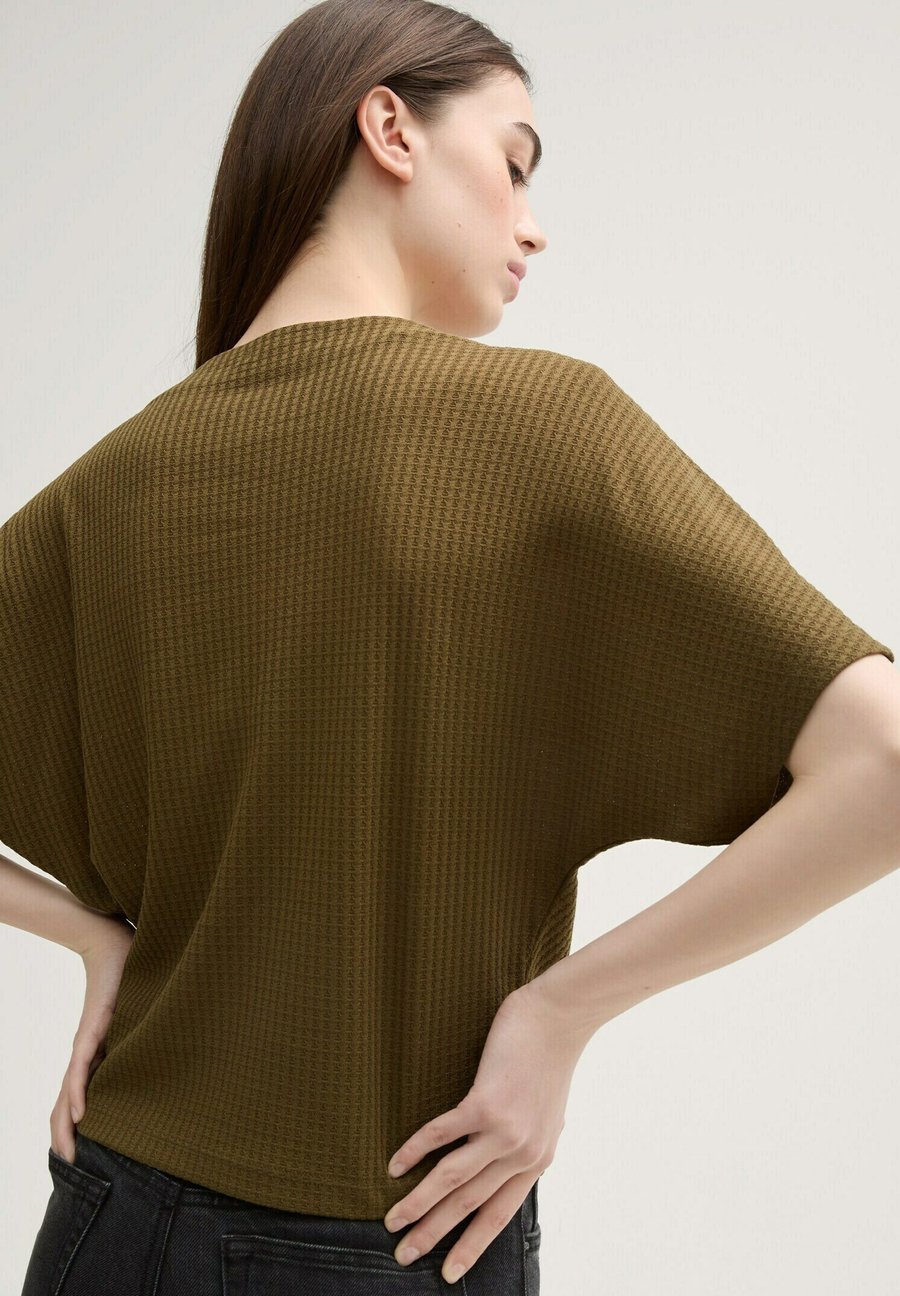 Свободная футболка с рукавами летучая мышь и вафельной текстурой. Вырез горловины: лодочка.Материал и уход