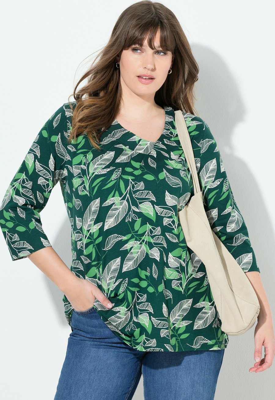 Топ Ulla Popken ASYMMETRIC LEAF PRINT, Emerald Green/Green
