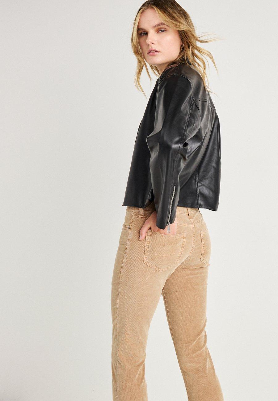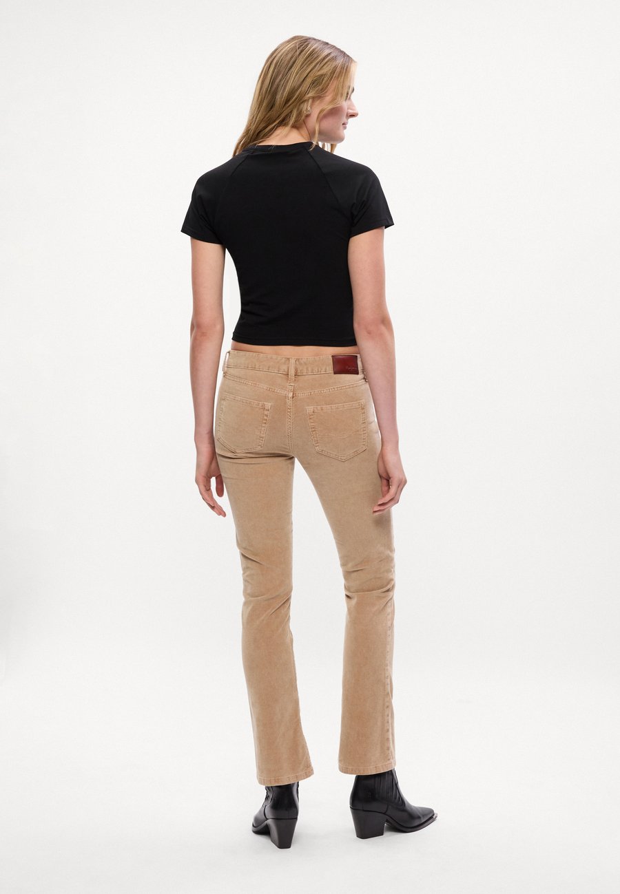 Пятикарманный стиль. Нашивка из натуральной кожи на поясе. Посадка: низкая.Материал и уход