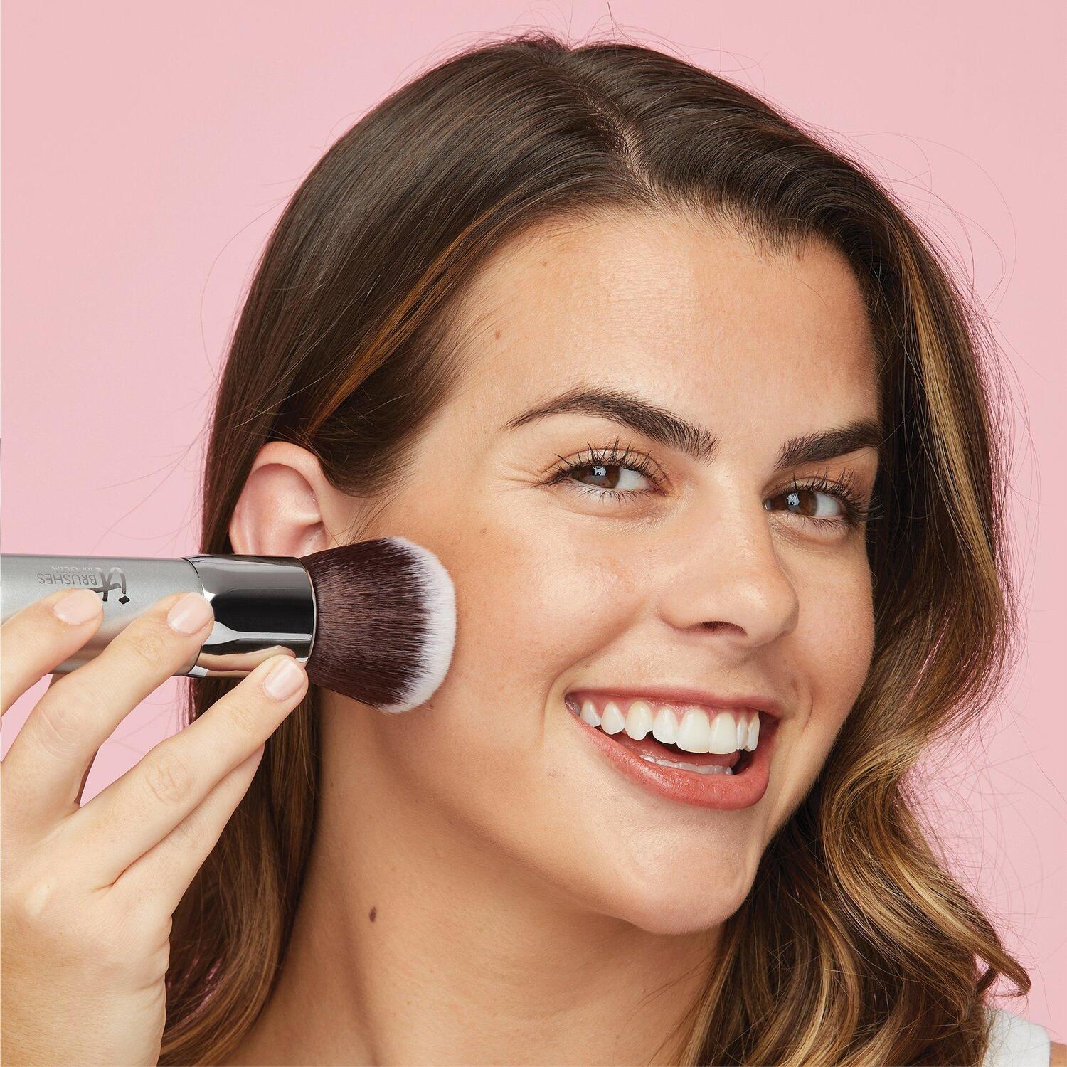 Начните нанесение с яблочек щек, затем на нос и подбородок. Наконец, нанесите бронзер на шею.Ингредиенты