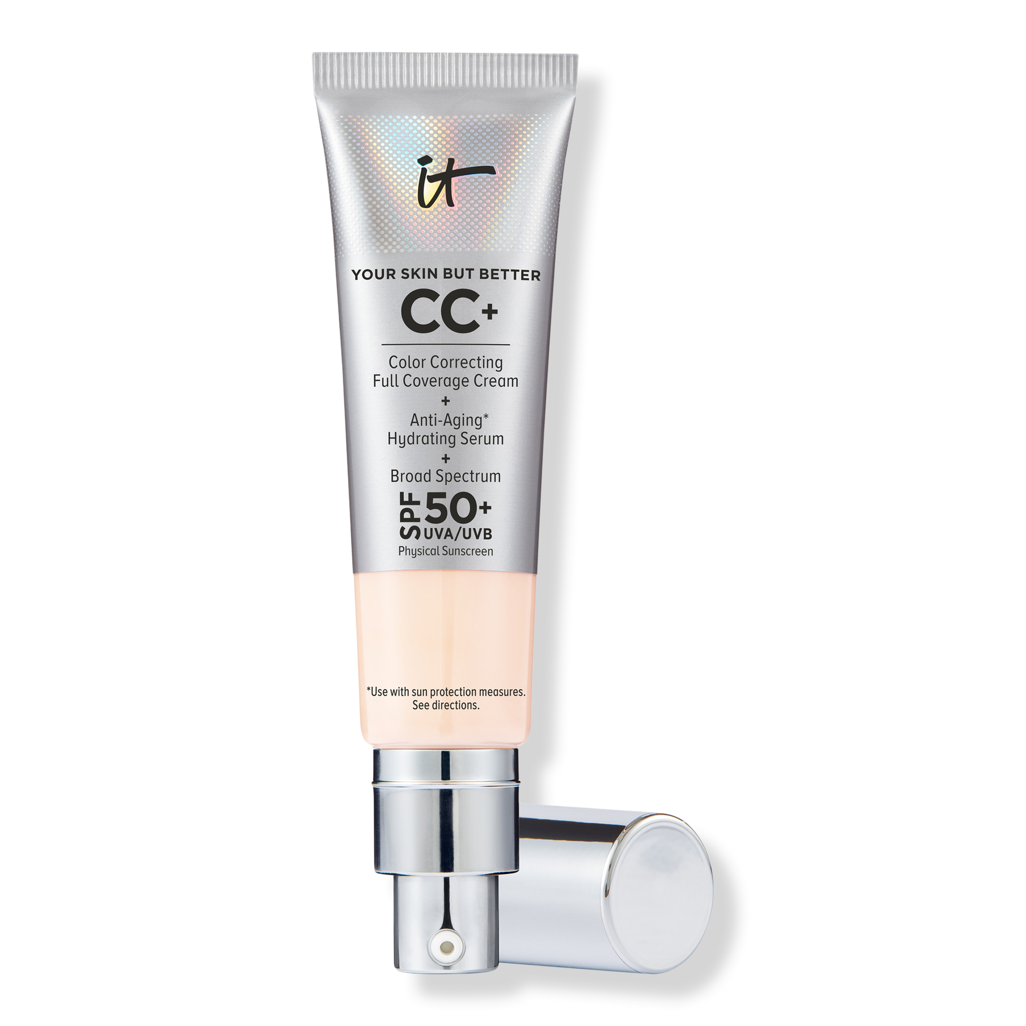 Нанесите 1-2 нажатия CC+ крема с SPF 50+ на чистую кожу Нанесите на кожу с помощью вашей любимой кисти для макияжа IT Cosmetics. Может использоваться как увлажняющий крем, антивозрастная сыворотка, консилер, тональный крем и солнцезащитное средство, в зависимости от ваших потребностей в покрытии.Ингредиенты