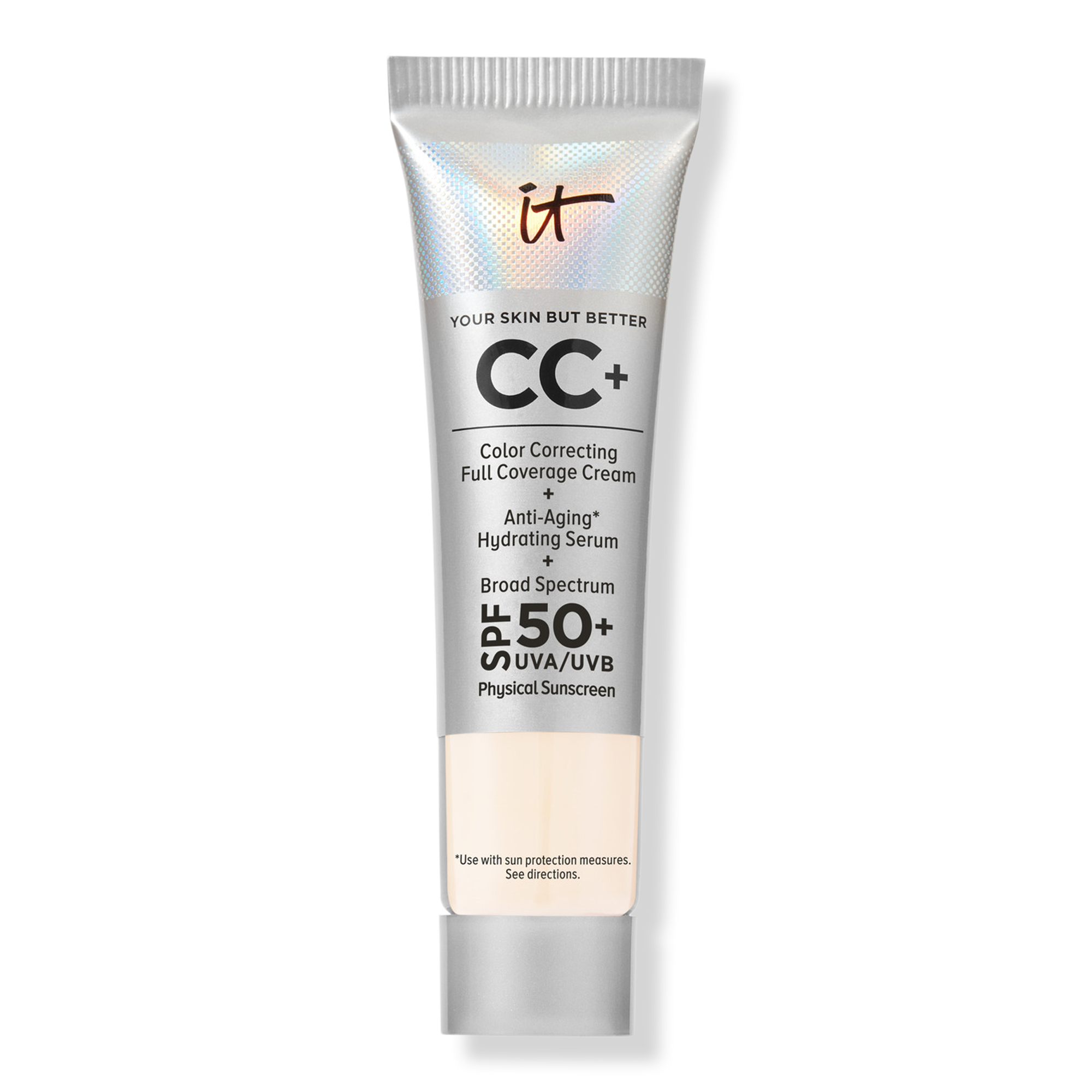 Нанесите 1-2 нажатия CC+ крема с SPF 50+ на чистую кожу с помощью кисти IT Brushes для аэрографа ULTA Airbrush Spatula Brush Кисть № 117 или ваша любимая кисть для тонального крема. Может использоваться как увлажняющий крем, антивозрастная сыворотка, консилер, тональный крем и солнцезащитный крем, в зависимости от ваших потребностей в покрытии.