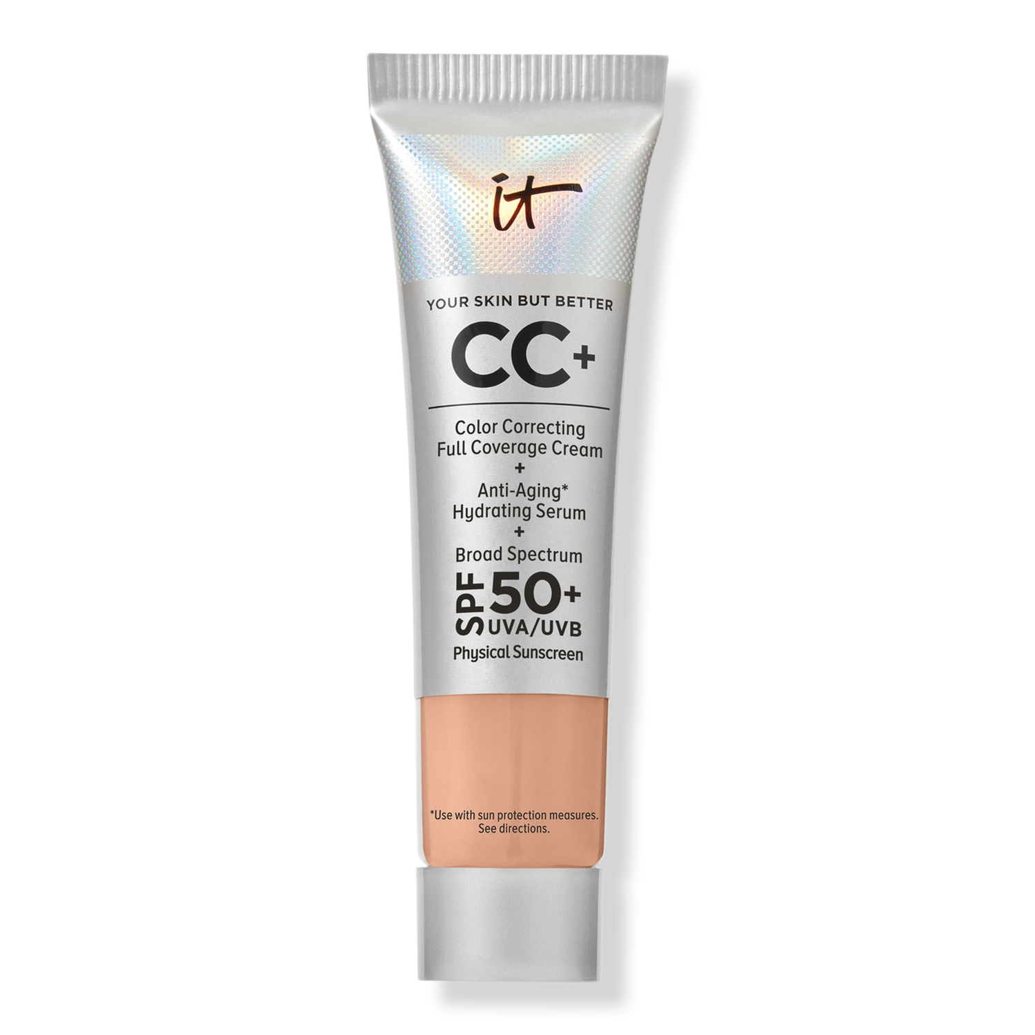 Нанесите 1-2 нажатия CC+ крема с SPF 50+ на чистую кожу с помощью кисти IT Brushes для аэрографа ULTA Airbrush Spatula Brush Кисть № 117 или ваша любимая кисть для тонального крема. Может использоваться как увлажняющий крем, антивозрастная сыворотка, консилер, тональный крем и солнцезащитный крем, в зависимости от ваших потребностей в покрытии.