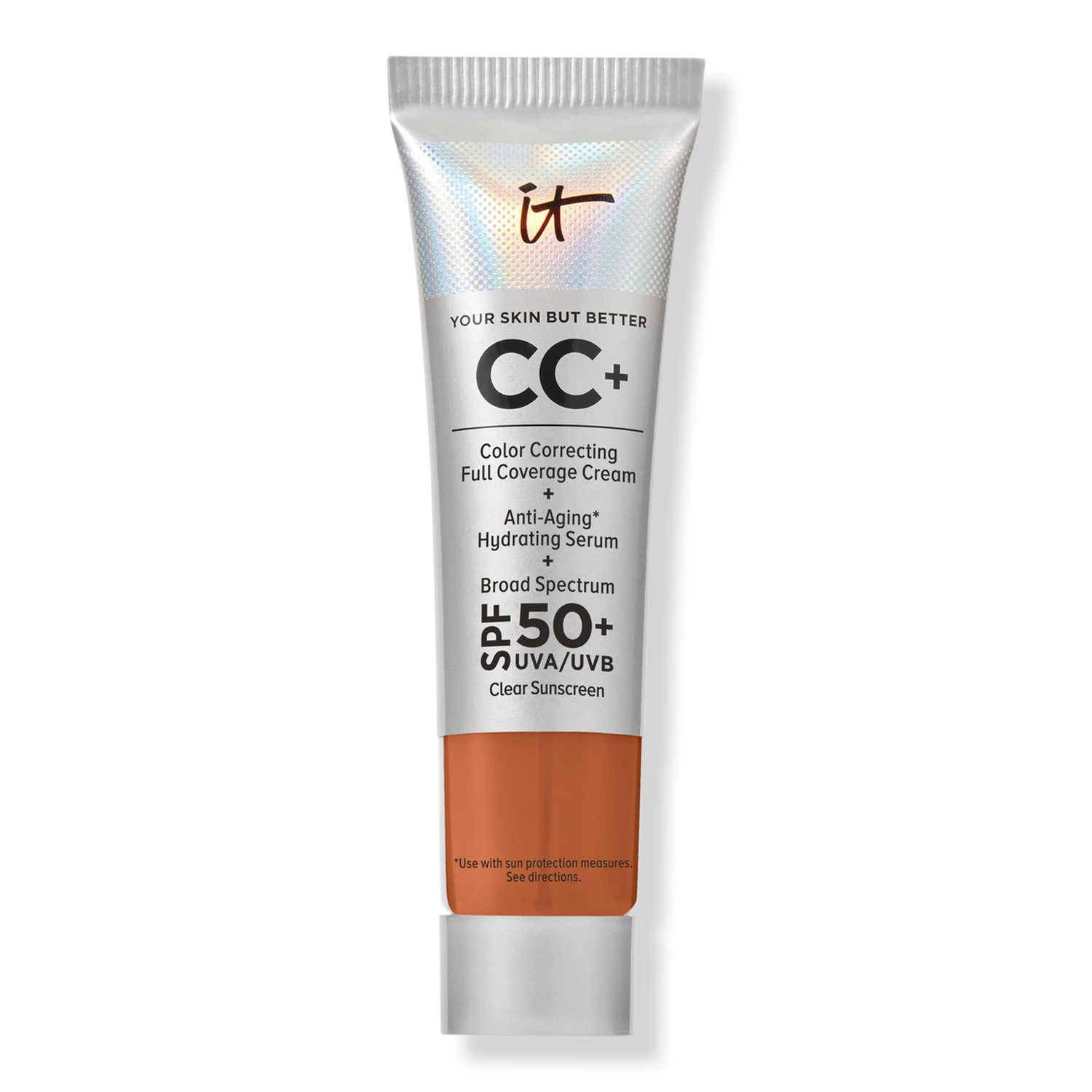 Нанесите 1-2 нажатия CC+ крема с SPF 50+ на чистую кожу с помощью кисти IT Brushes для аэрографа ULTA Airbrush Spatula Brush Кисть № 117 или ваша любимая кисть для тонального крема. Может использоваться как увлажняющий крем, антивозрастная сыворотка, консилер, тональный крем и солнцезащитный крем, в зависимости от ваших потребностей в покрытии.