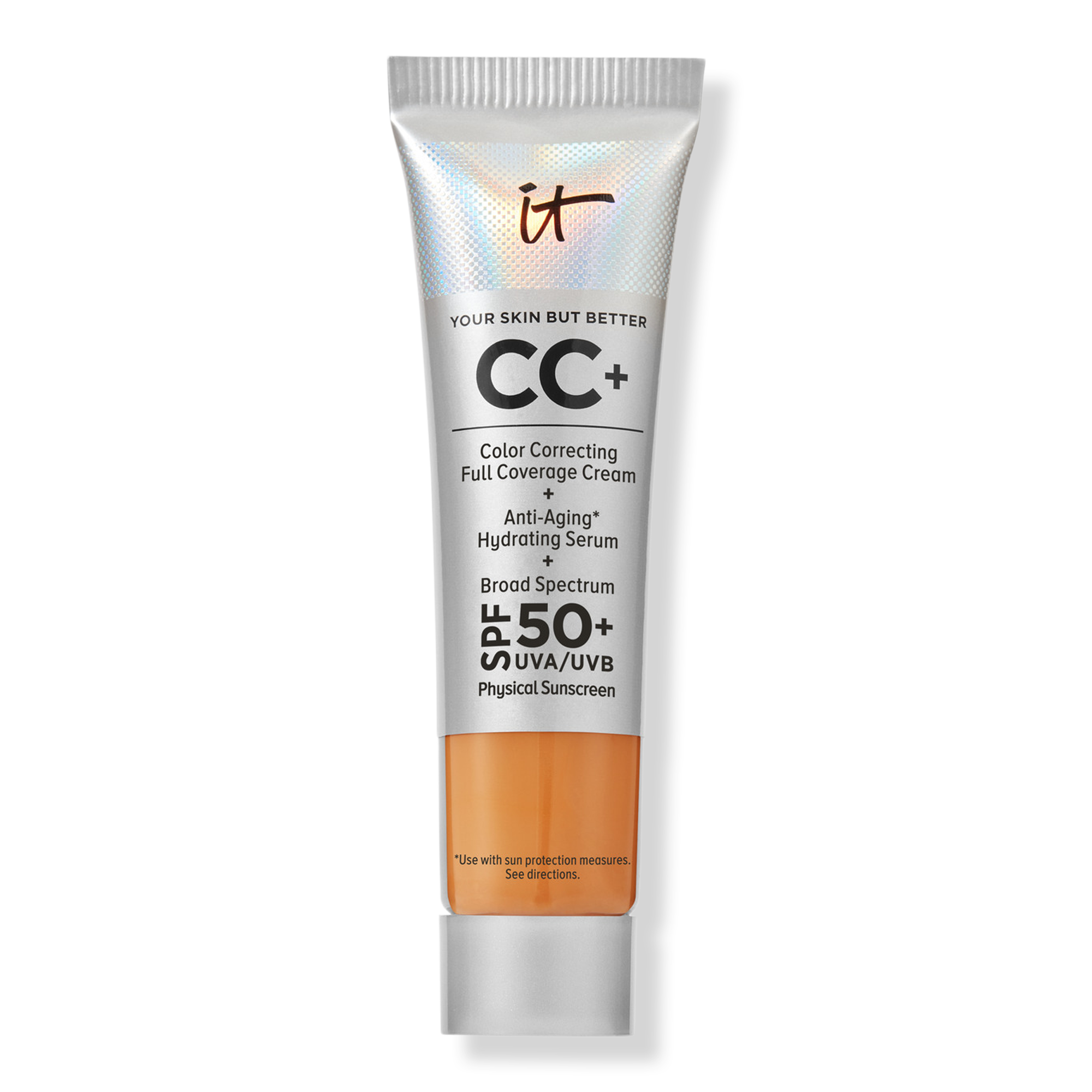 Нанесите 1-2 нажатия CC+ крема с SPF 50+ на чистую кожу с помощью кисти IT Brushes для аэрографа ULTA Airbrush Spatula Brush Кисть № 117 или ваша любимая кисть для тонального крема. Может использоваться как увлажняющий крем, антивозрастная сыворотка, консилер, тональный крем и солнцезащитный крем, в зависимости от ваших потребностей в покрытии.