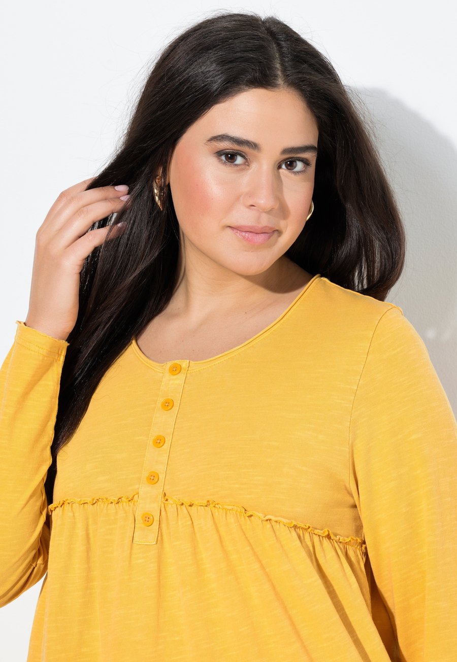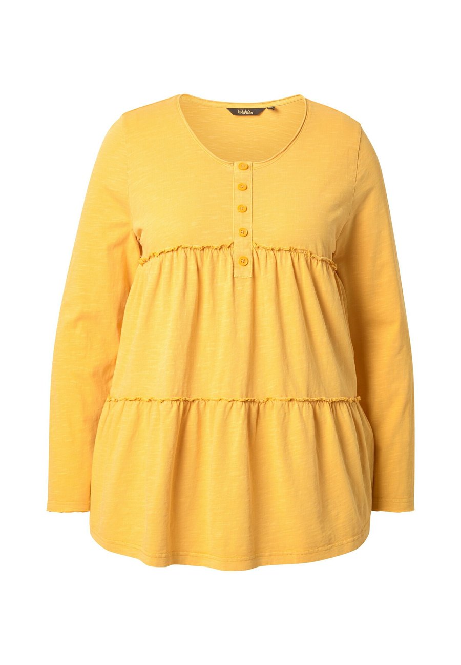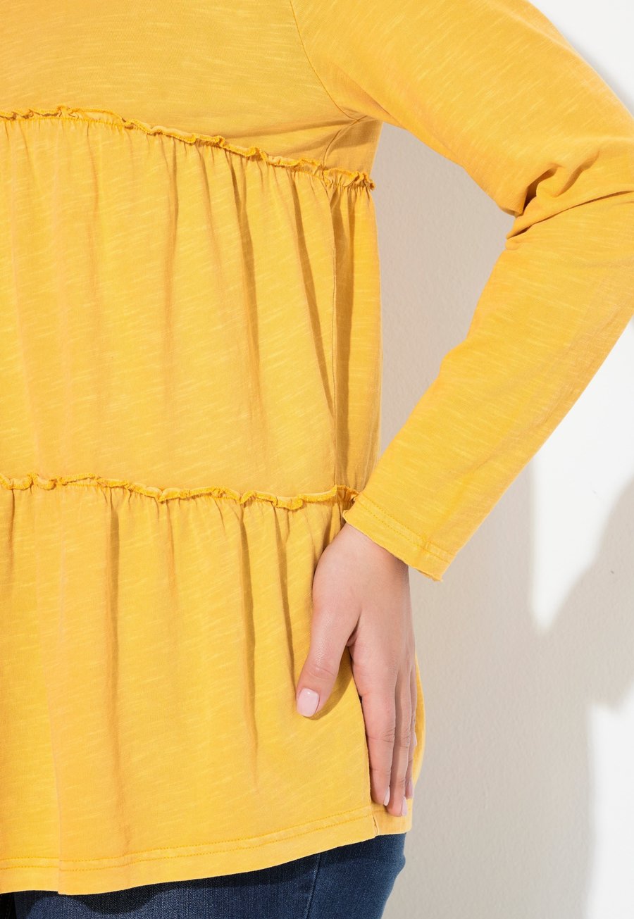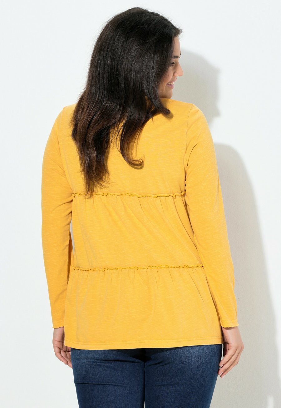 Топ Ulla Popken RUFFLED FLOUNCE PANEL LONG SLEEVE, Curry/Light Brown