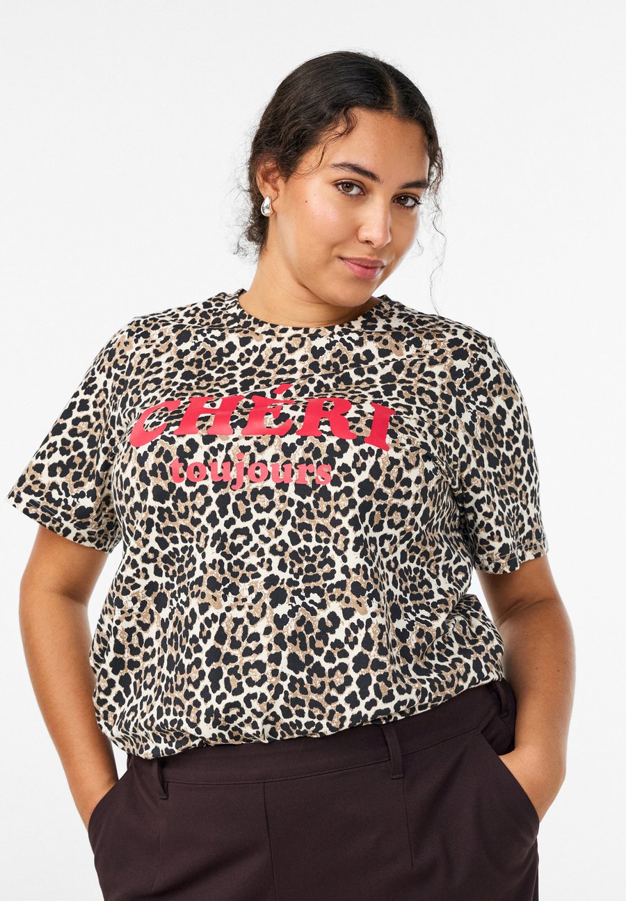 Футболка Zizzi MIT LEOPARDENMUSTER UND TEXT, Brown Leo Aop/Brown