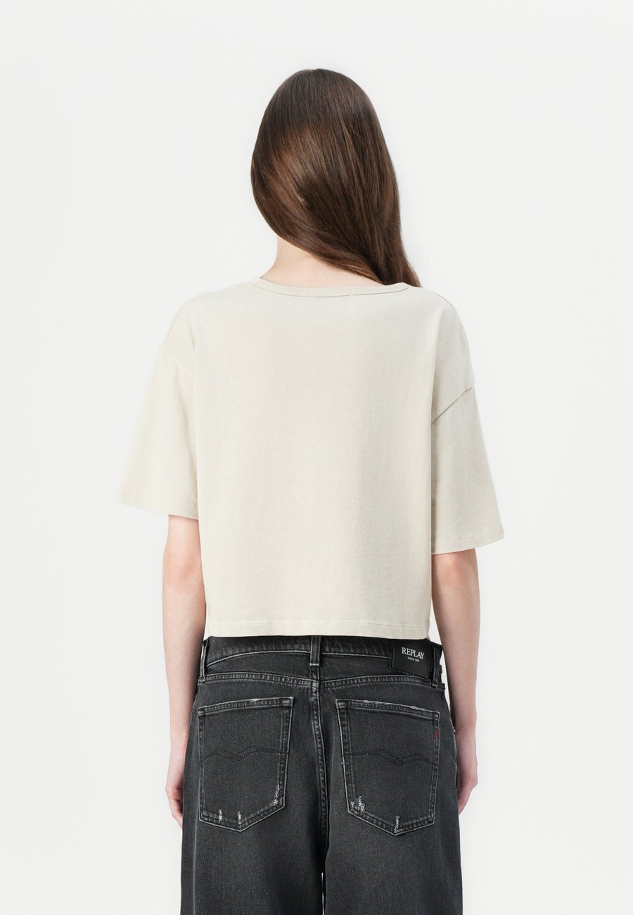 Небольшая этикетка-флажок на уровне груди. Вырез горловины: круглый.Материал и уход
