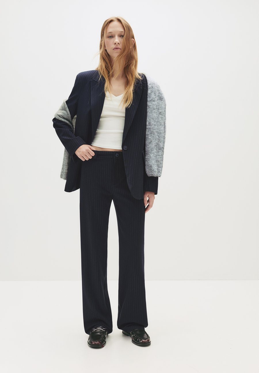 ТКАНЬ: очень эластичная. Стильные брюки полной длины с широкими штанинами, шлевками для ремня, застежкой на молнию и верхнюю пуговицу. Длина внутреннего шва: 83,5 см. Высота посадки: стандартная.Материал и уход