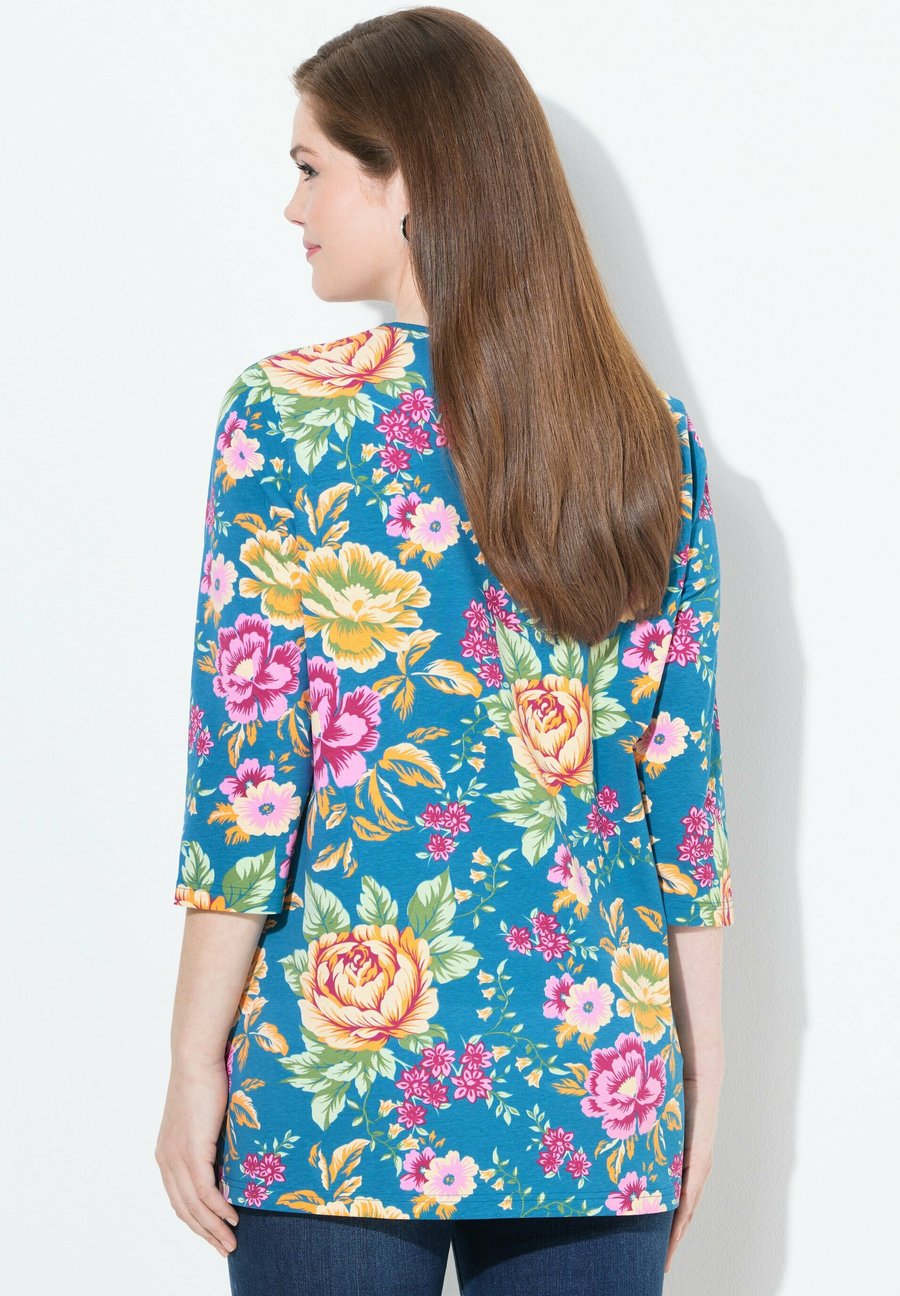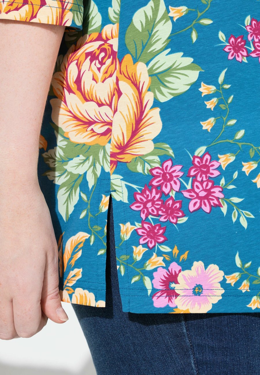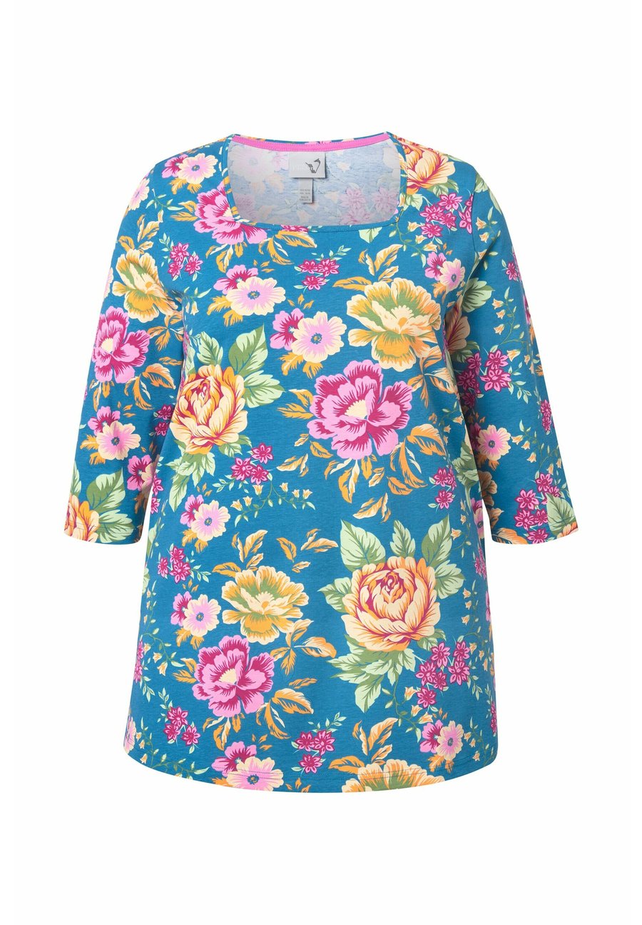Топ Ulla Popken FLOWER PRINT SQUARE NECK, Royal Blue