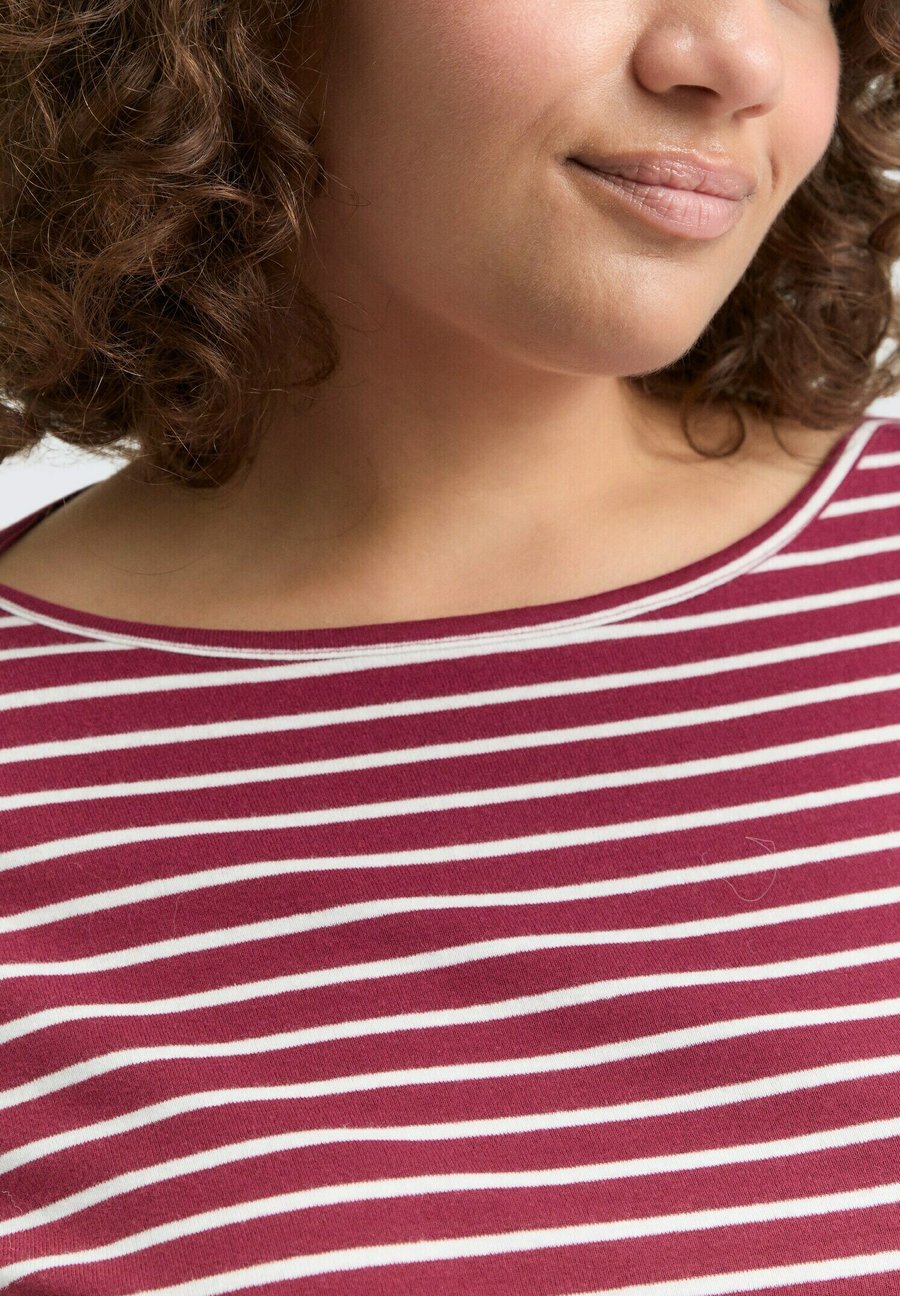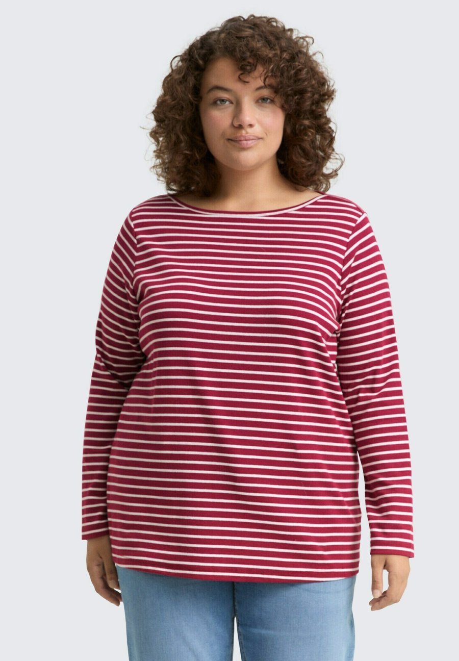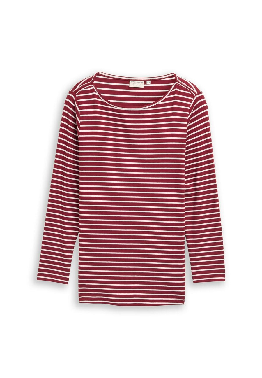 Полосатый топ с длинными рукавами и вырезом-лодочкой. Изготовлен из хлопчатобумажной ткани с легкой эластичностью для комфортного ношения. Вырез: ЛодочкаМатериал и уход