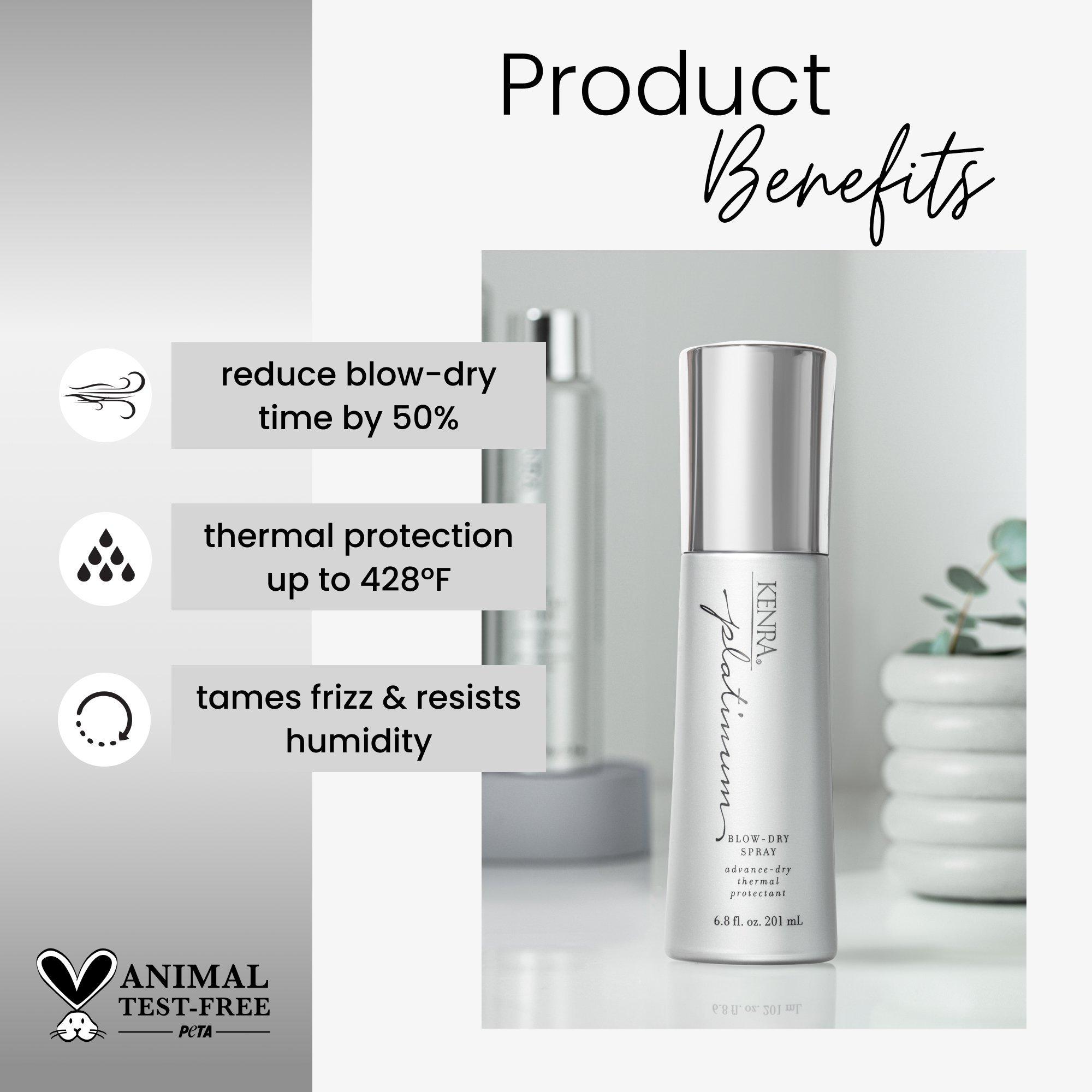 Спрей для укладки волос Kenra Platinum Blow-Dry Spray имеет легкую формулу, которая значительно сокращает время сушки феном и обеспечивает интенсивную защиту от воздействия высоких температур, предотвращая повреждения и ломкость волос.