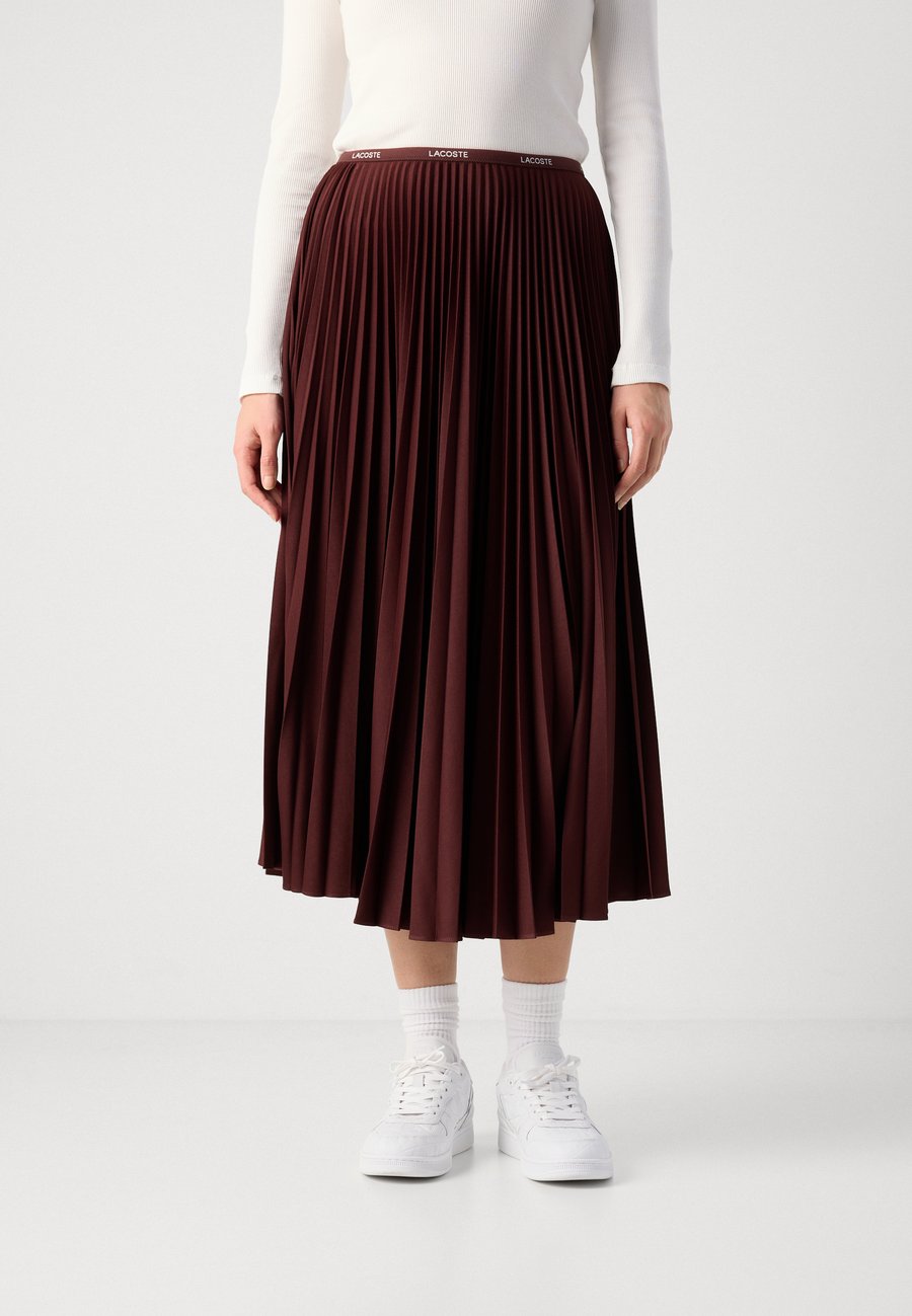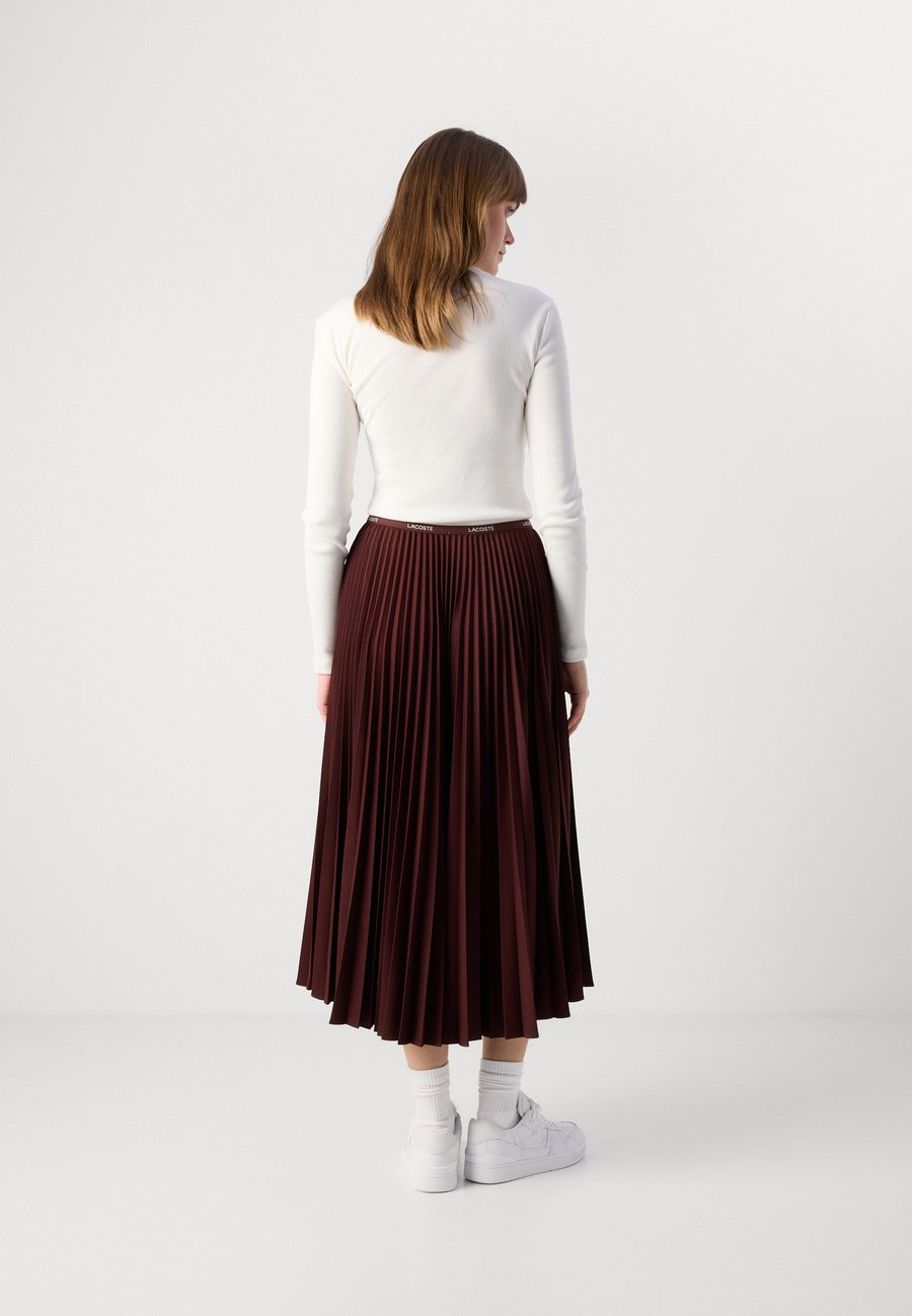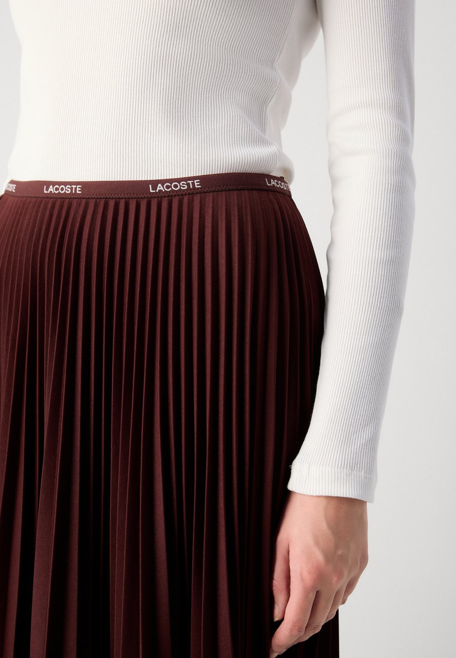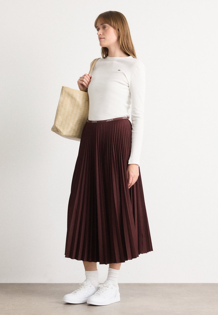 Длинная, струящаяся юбка Lacoste с культовыми складками и контрастным эластичным поясом, демонстрирующая 90-летний опыт творчества. Узор: ОднотонныйМатериал и уход