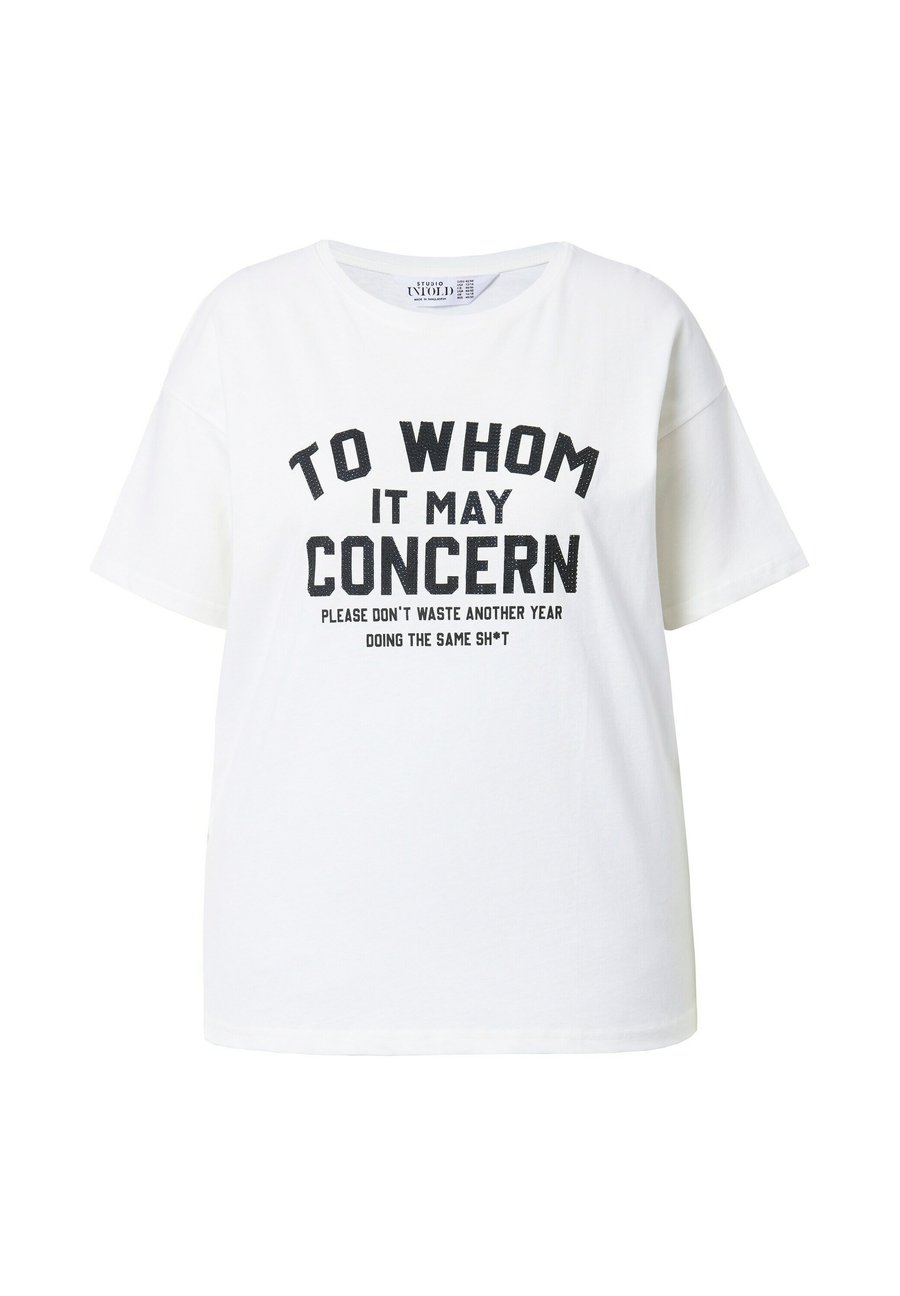Футболка Studio Untold OVERSIZED, SCHRIFT MIT GLITZERSTEINCHEN, Off-White/White
