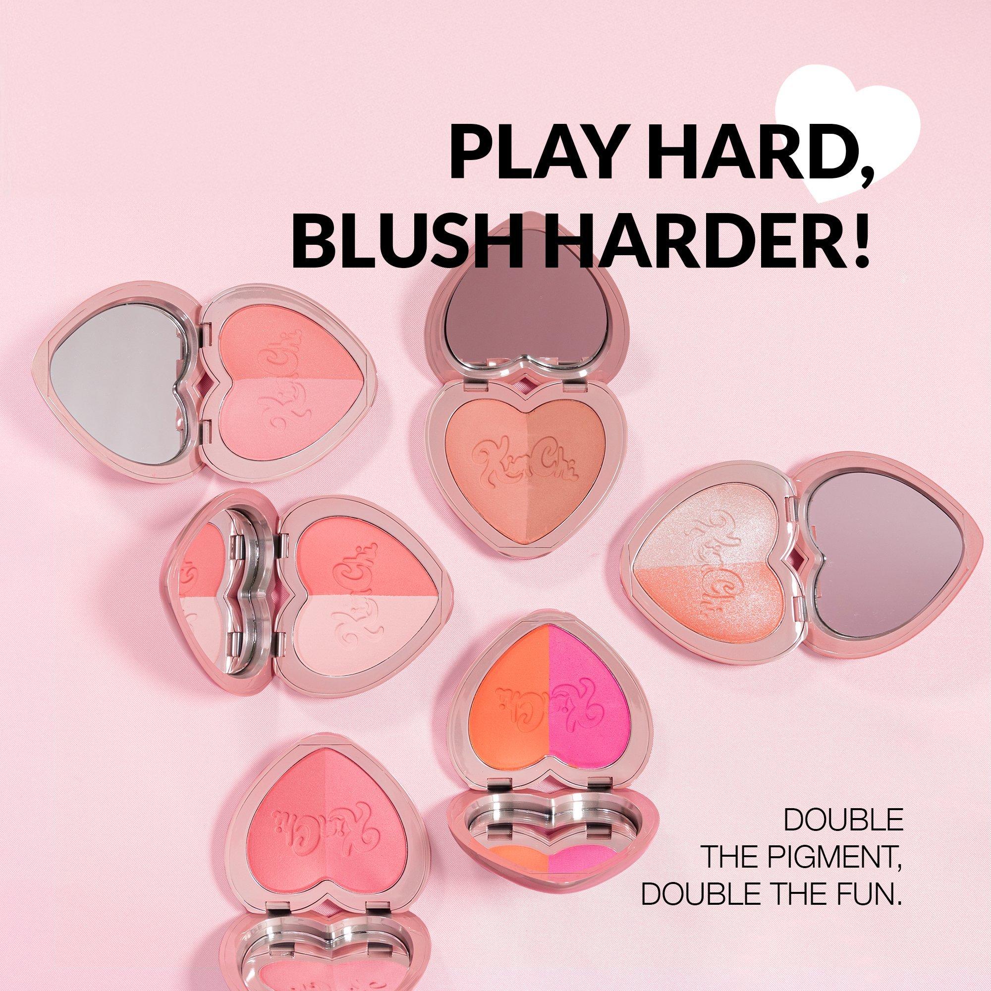 Покраснитесь, как богиня, с этим двойным футляром в форме сердца, содержащим два сияющих оттенка. Используйте их по отдельности или смешайте вместе для создания третьего оттенка - три образа в одном! Добейтесь свежего, как после поцелуя, румянца с волшебным шармом КимЧи.