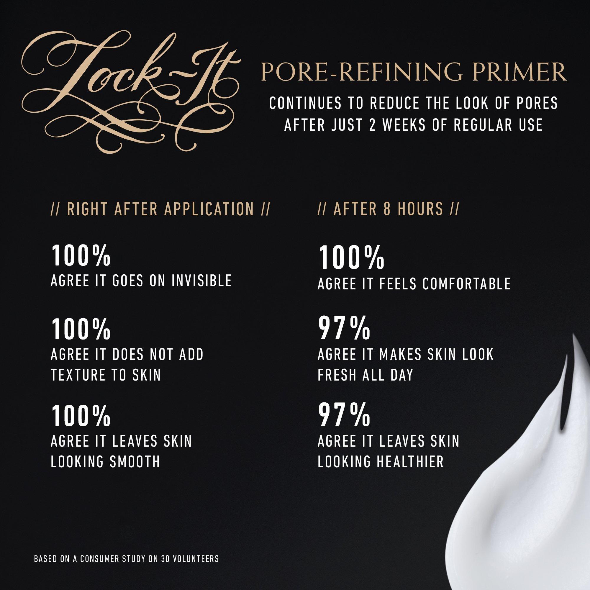 - В клиническом исследовании Lock-It продолжал уменьшать видимость пор всего через две недели регулярного использования