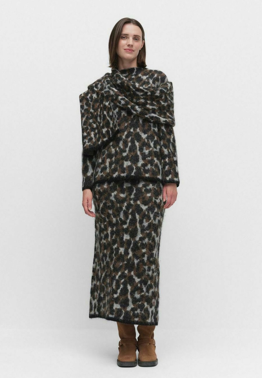 Юбка Bonnie от Dobber - это жаккардовая юбка с изысканной текстурой и плавной драпировкой. Она имеет прямой крой и эластичный пояс для большего комфорта и создания привлекательного силуэта. Изготовлена из ворсистой шерсти альпаки, обеспечивающей тепло, мягкость и роскошные ощущения. Сочетайте его с подходящим трикотажным изделием Bonnie для создания завершенного, гармоничного образа. Узор: Анималистический принтМатериал и уход