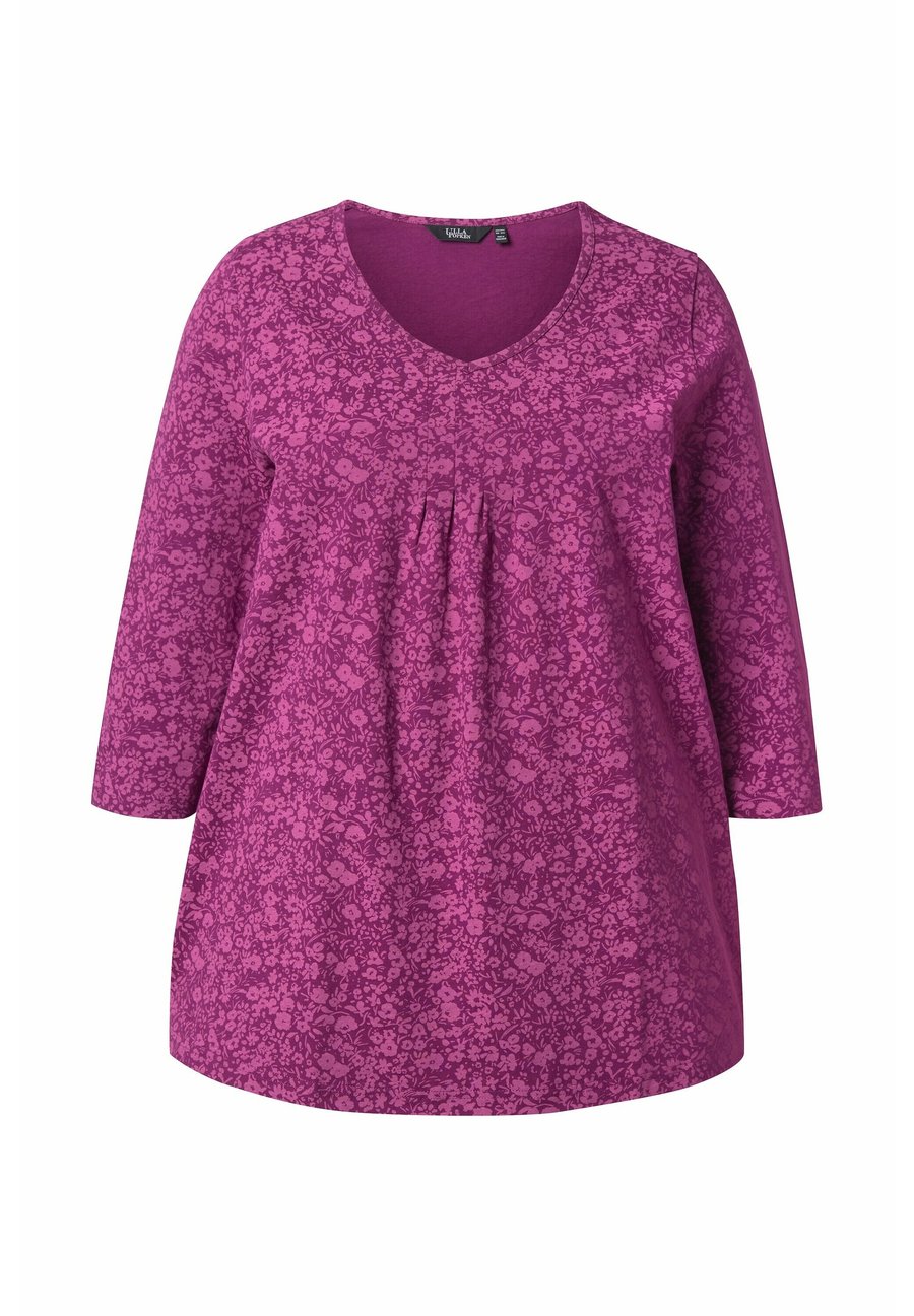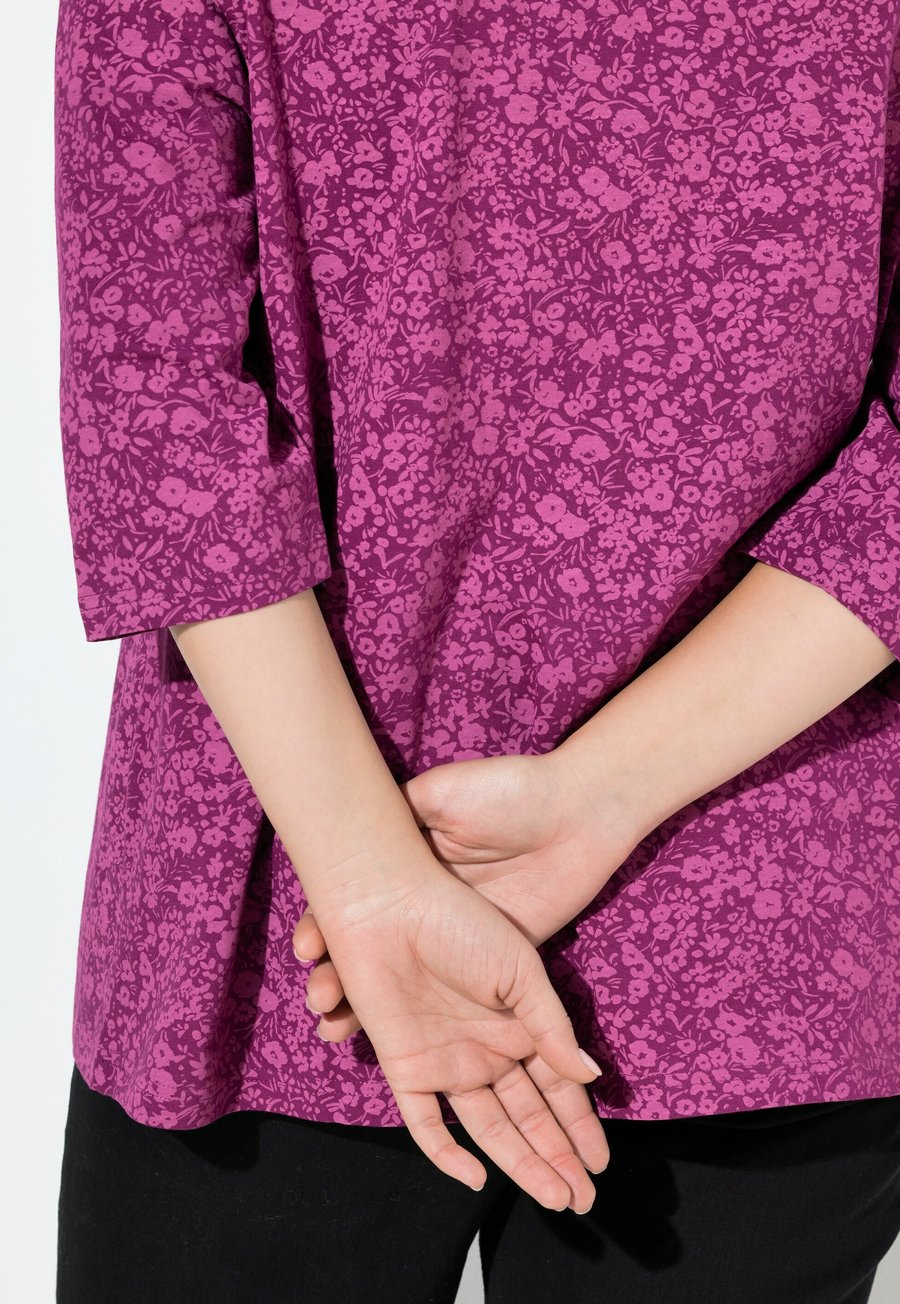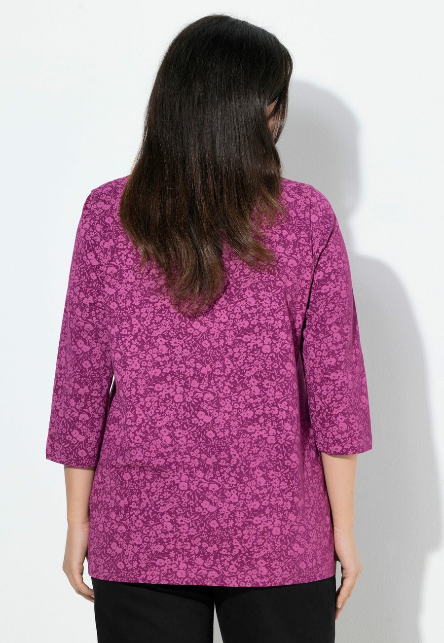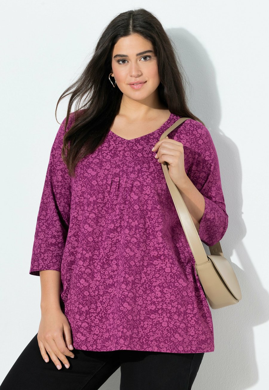 Топ Ulla Popken PLEATED FLORAL PRINT 3/4 SLEEVE, Raspberry/Berry