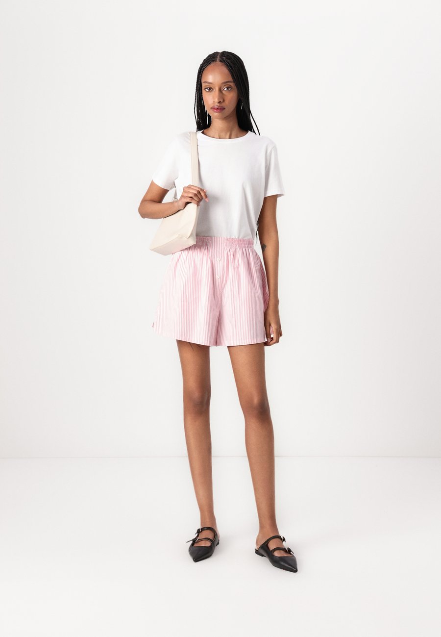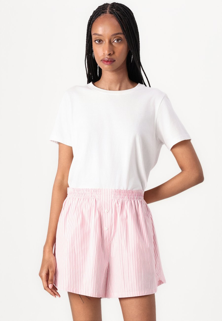 Женственные шорты из хлопкового поплина свободного кроя, струящейся ткани, эластичного пояса и культовых полосок. Новая незаменимая вещь. Посадка: ВысокаяМатериал и уход